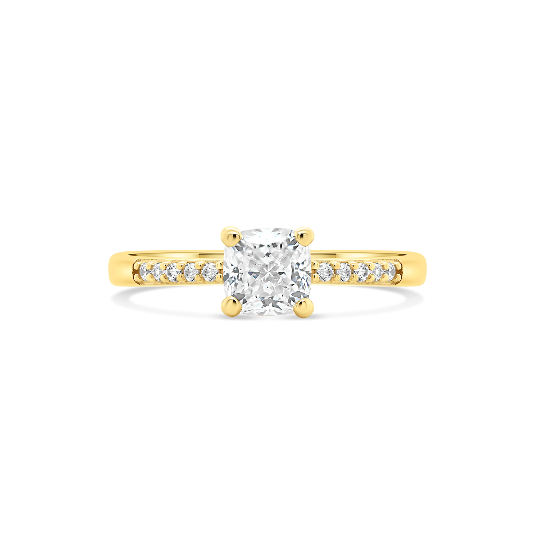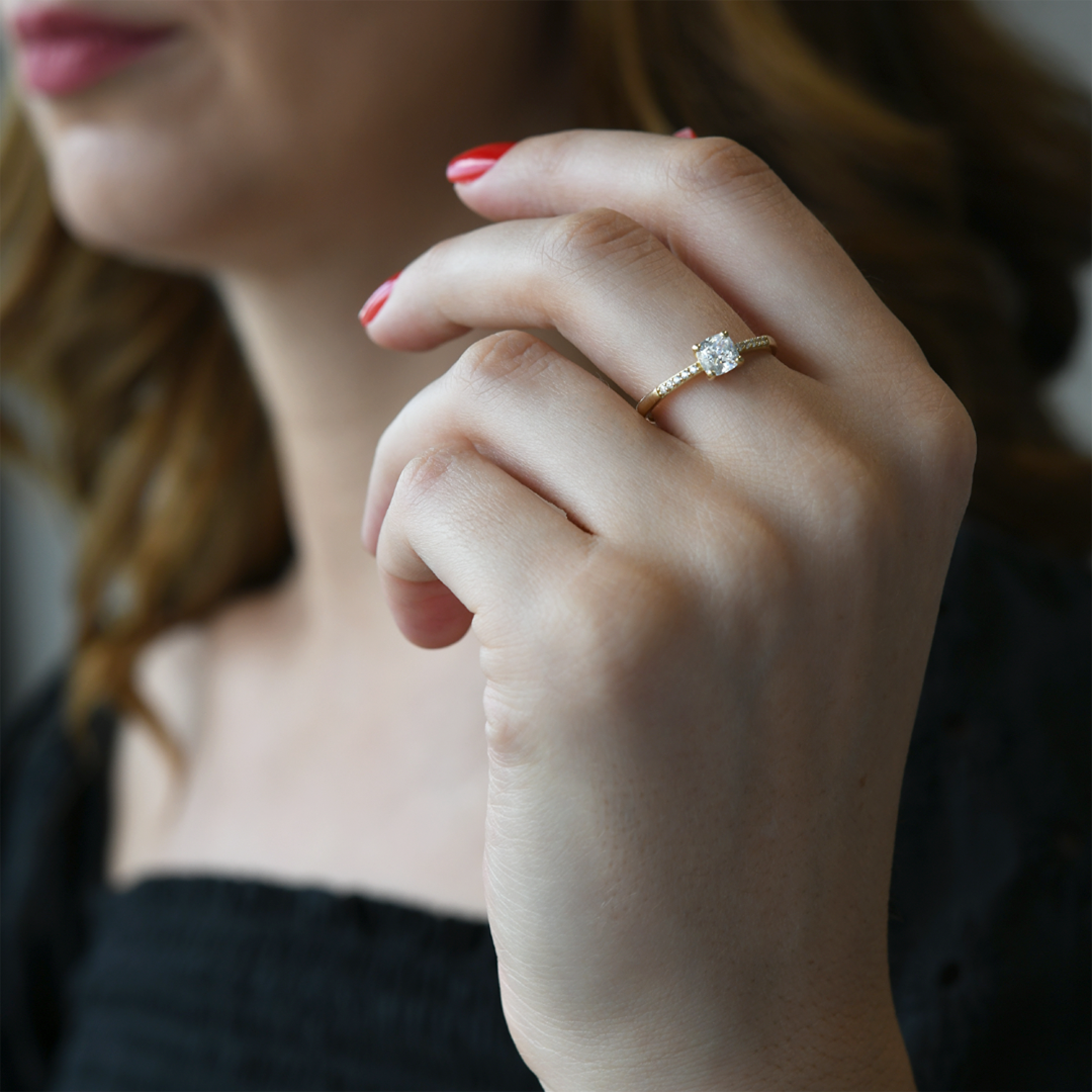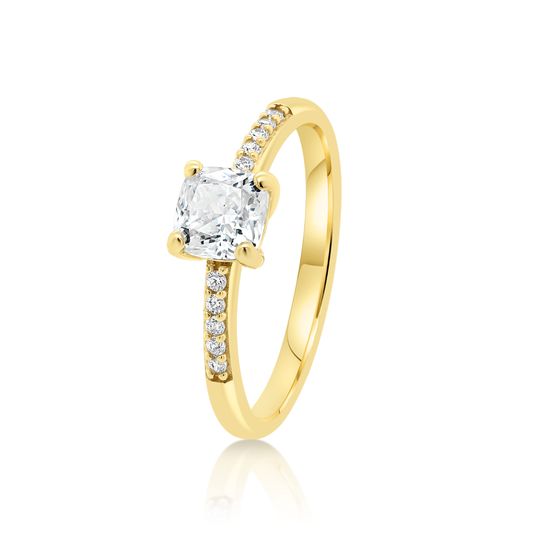 Inel de logodnă din aur galben de 14K cu pietre cubic zirconia.