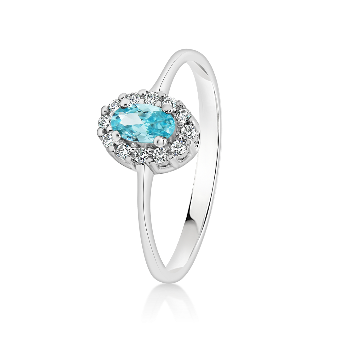 Inel din aur alb de 14K cu pietre cubic zirconia.