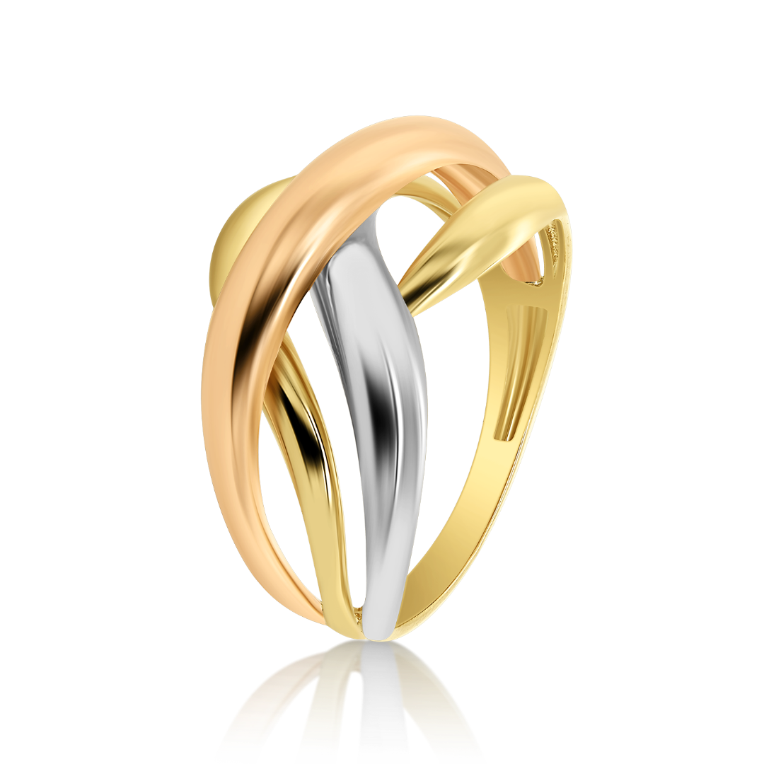 Inel din aur galben de 14K cu elemente din aur alb și roz.