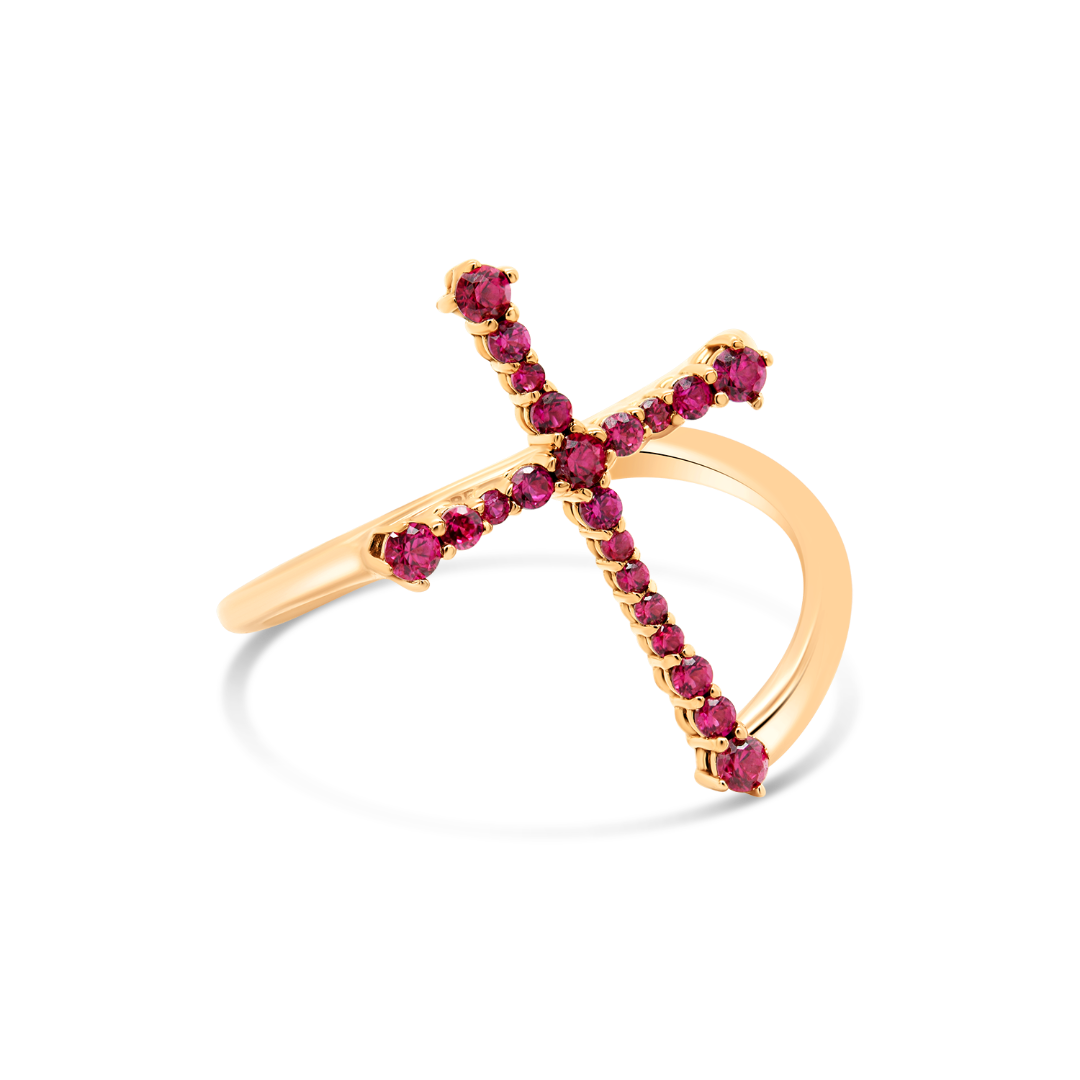 Inel din aur roz de 14K cu pietre cubic zirconia.