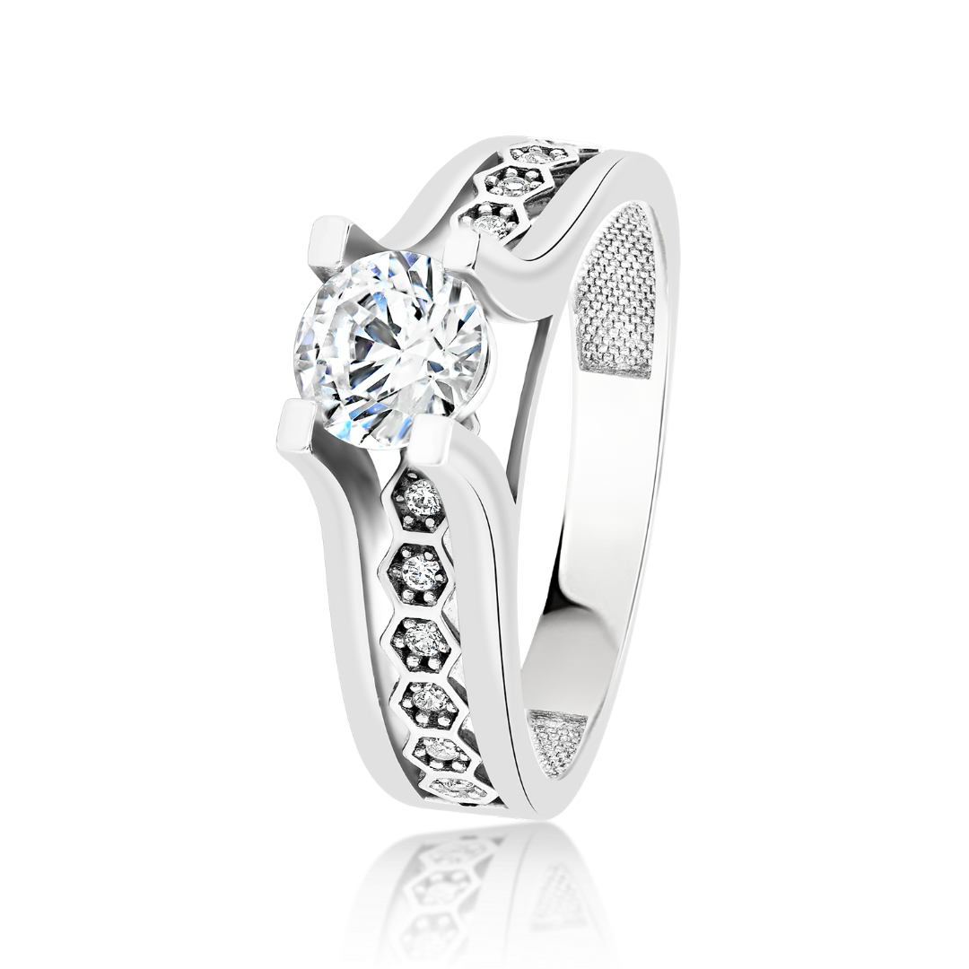 Inel din aur alb de 14K cu pietre Cubic Zirconia albe.