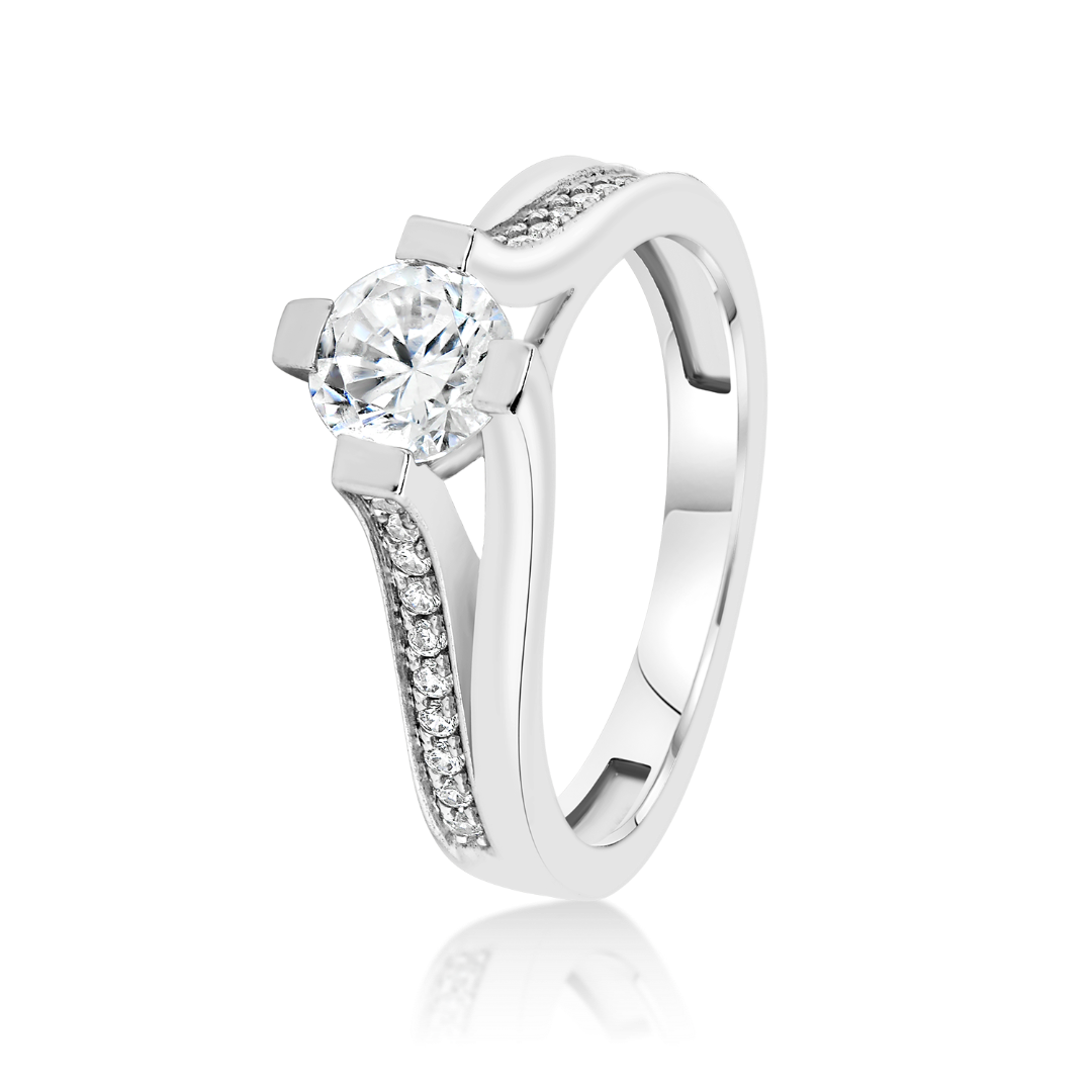 Inel din aur alb de 14K cu pietre Cubic Zirconia albe.
