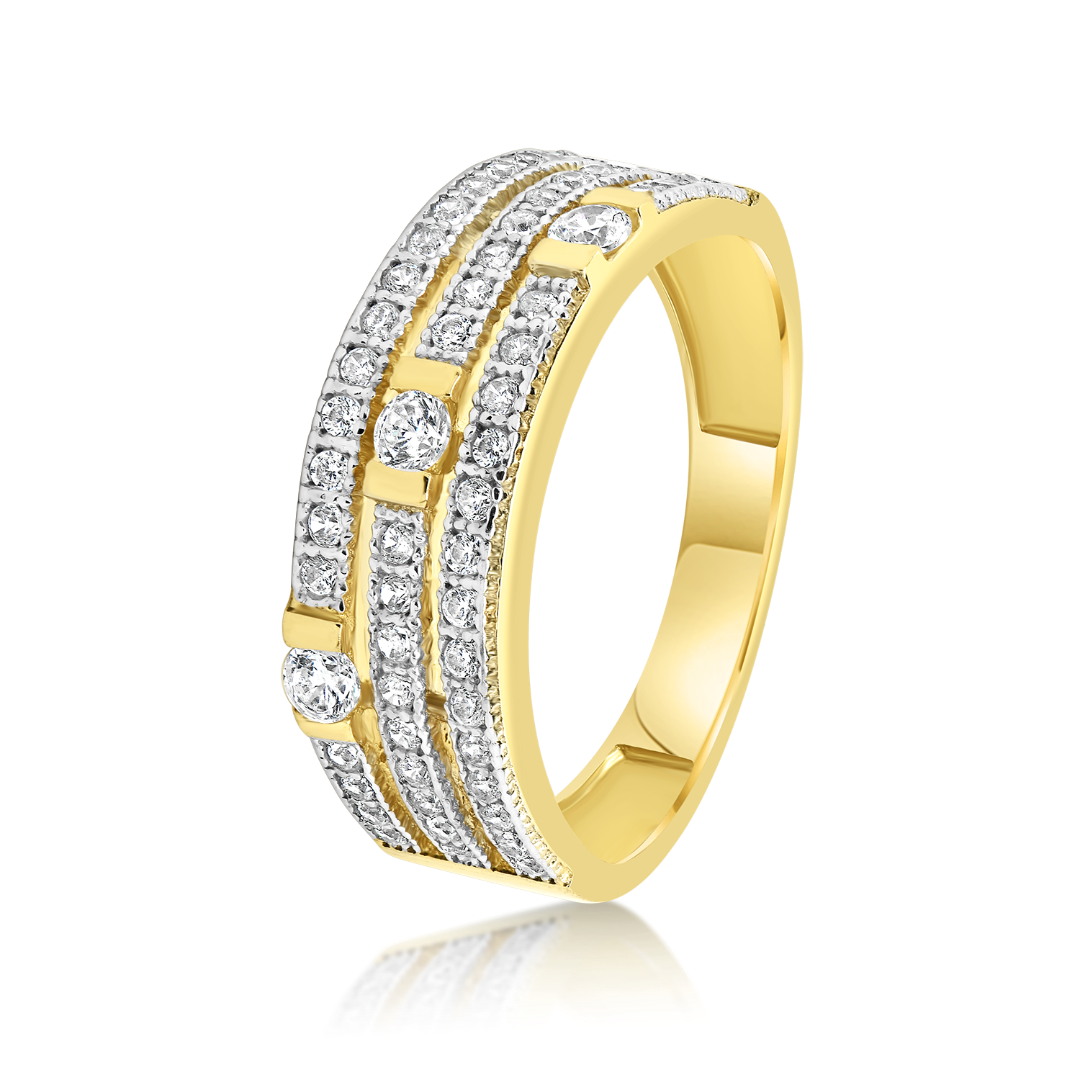 Inel din aur galben de 14K cu pietre Cubic Zirconia albe.