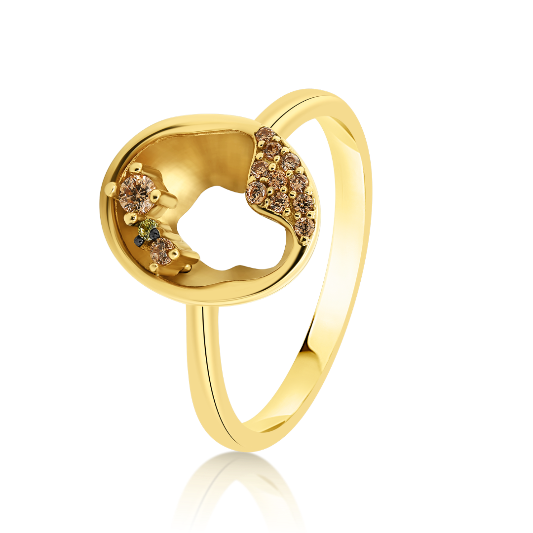 Inel din aur galben de 14K cu pietre Cubic Zirconia colorate.