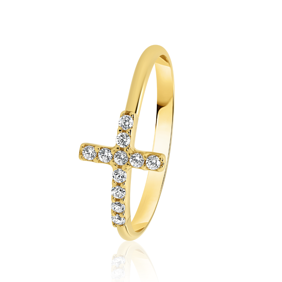 Inel din aur galben de 14K cu pietre Cubic Zirconia albe.
