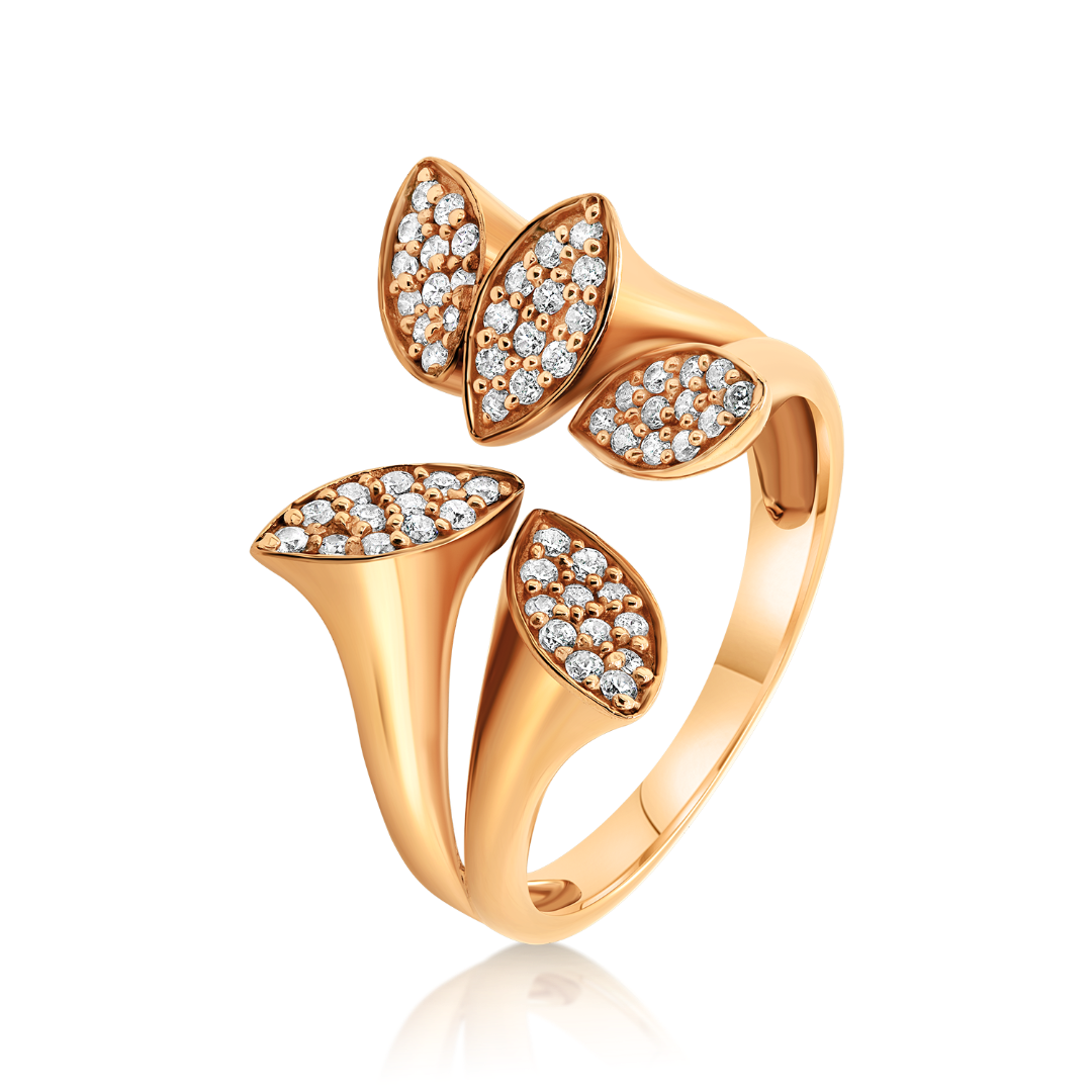 Inel din aur roz de 14K cu pietre Cubic Zirconia albe.