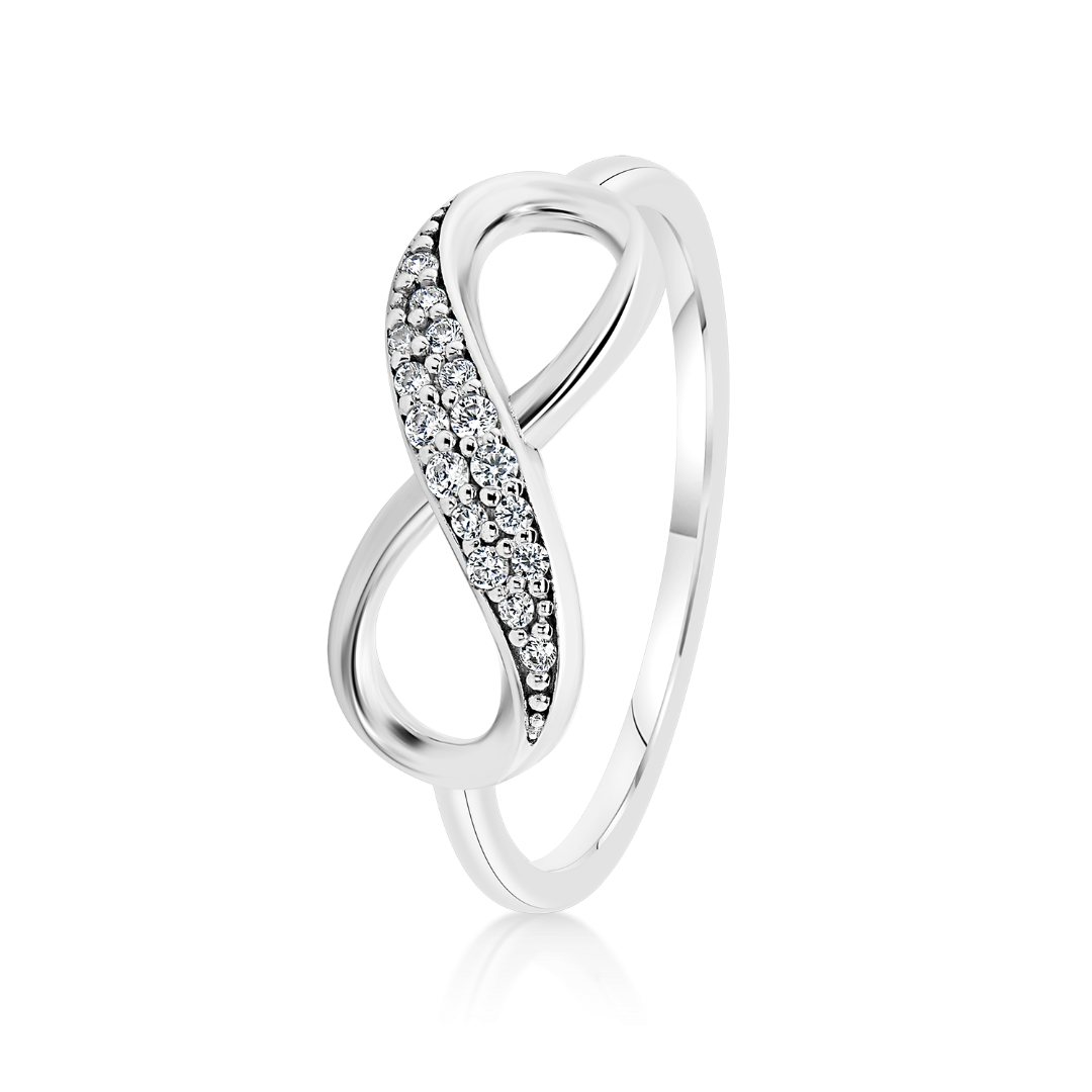 Inel din aur alb de 14K, cu element tip infinit și pietre Cubic Zirconia.