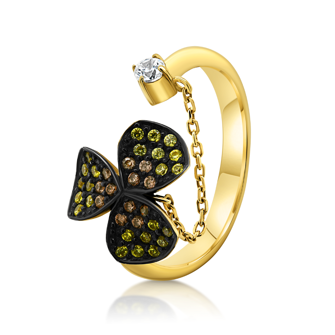Inel din aur galben de 14K cu pietre Cubic Zirconia colorate și rodiu negru.