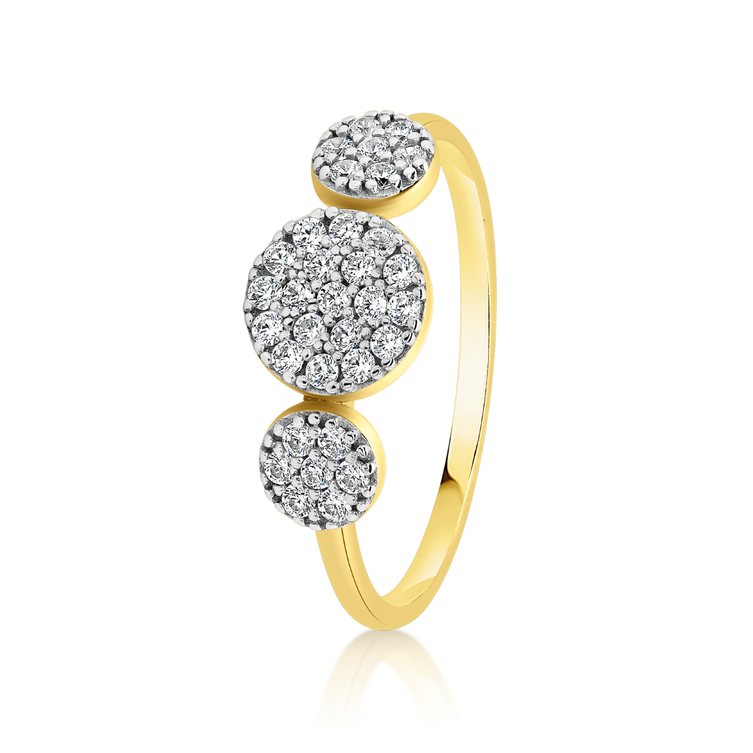 Inel din aur galben de 14K, cu elemente rotunde și pietre cubic zirconia.