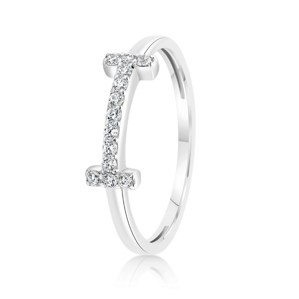 Inel din aur alb de 14K cu pietre cubic zirconia.