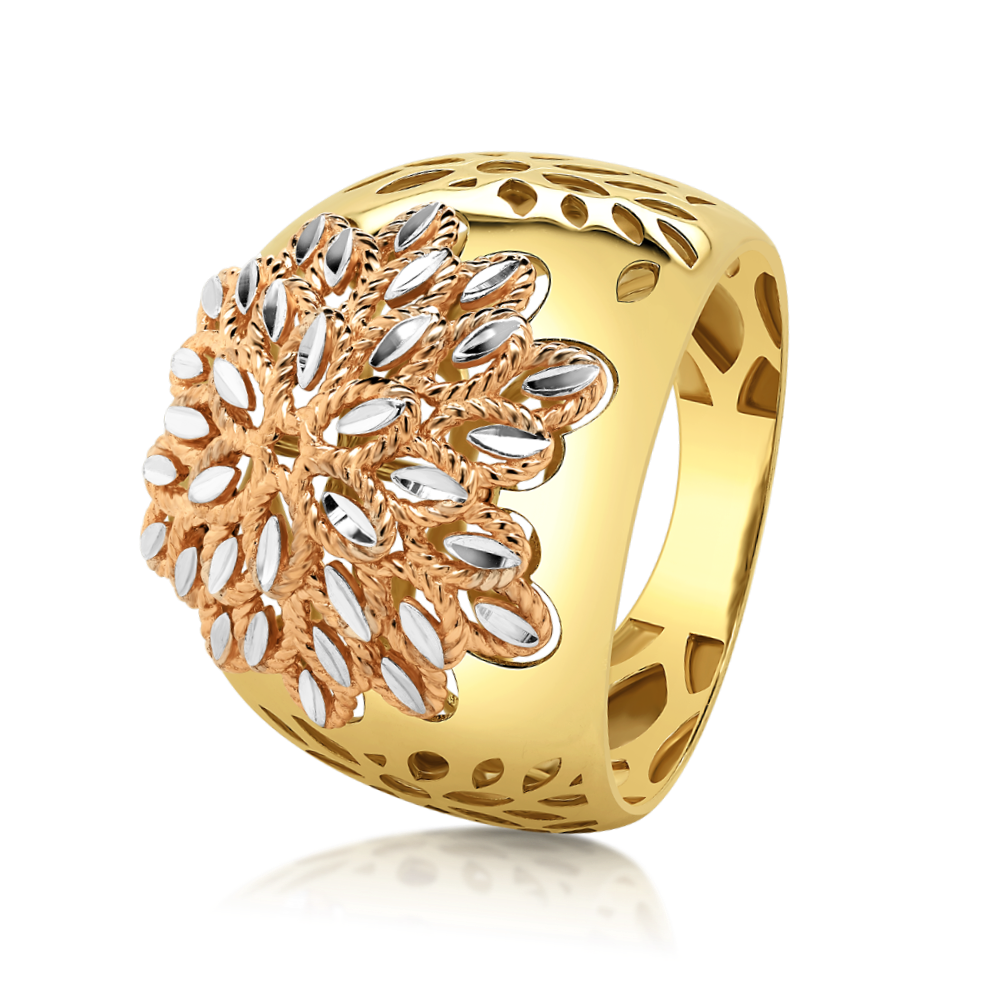 Inel din aur galben de 14K, cu elemente decupate și design împletit