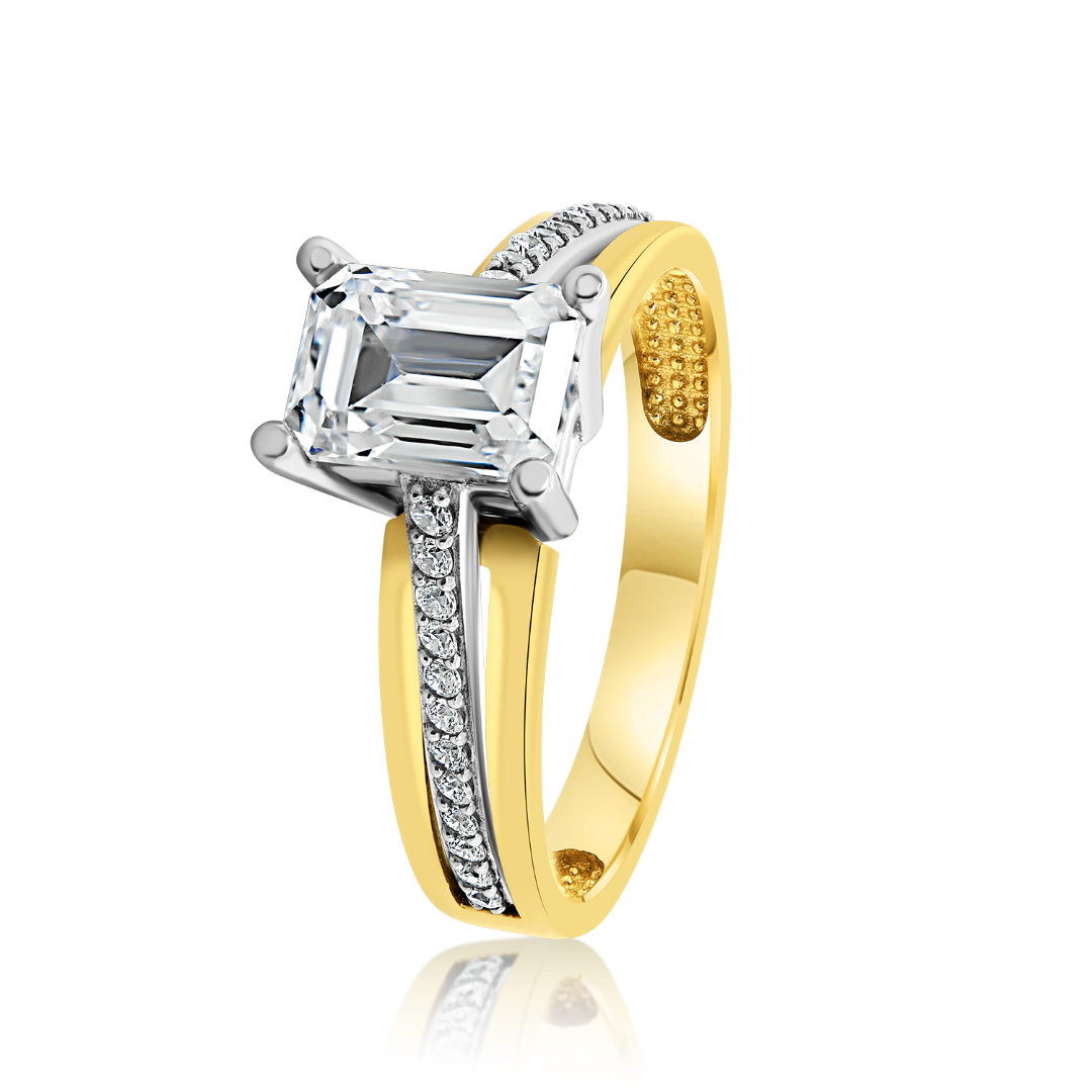 Inel din aur galben cu aur alb de 14K cu pietre Cubic Zirconia albe.