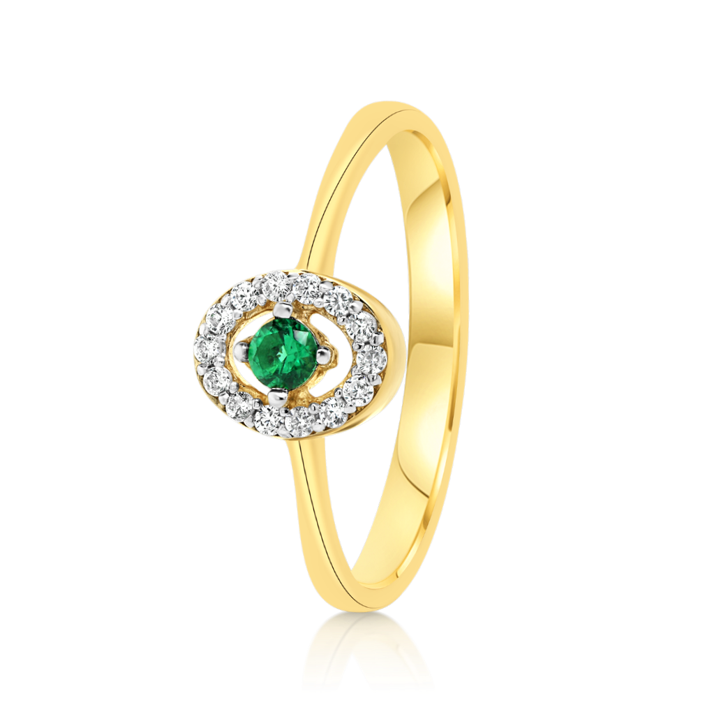 Inel din aur galben de 14K, cu pietre Cubic Zirconia albe și verzi.
