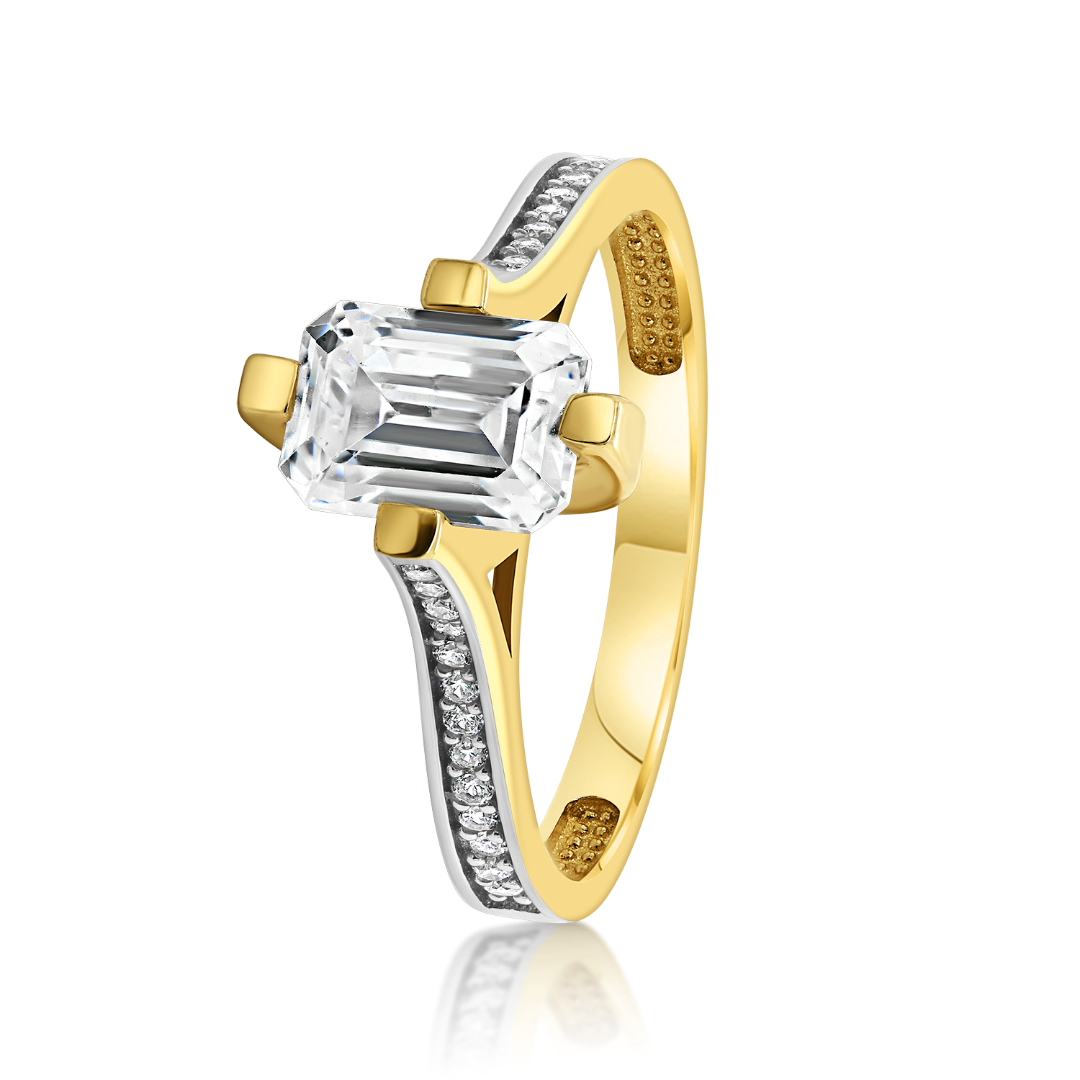 Inel din aur galben de 14K cu pietre Cubic Zirconia albe.