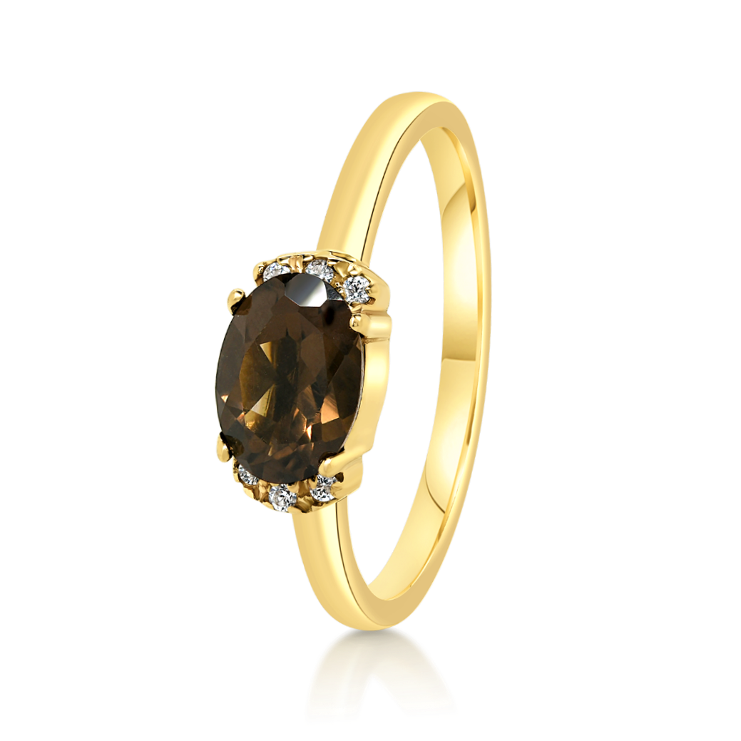 Inel din aur galben de 14K cu Smoky Quartz și pietre cubic zirconia.