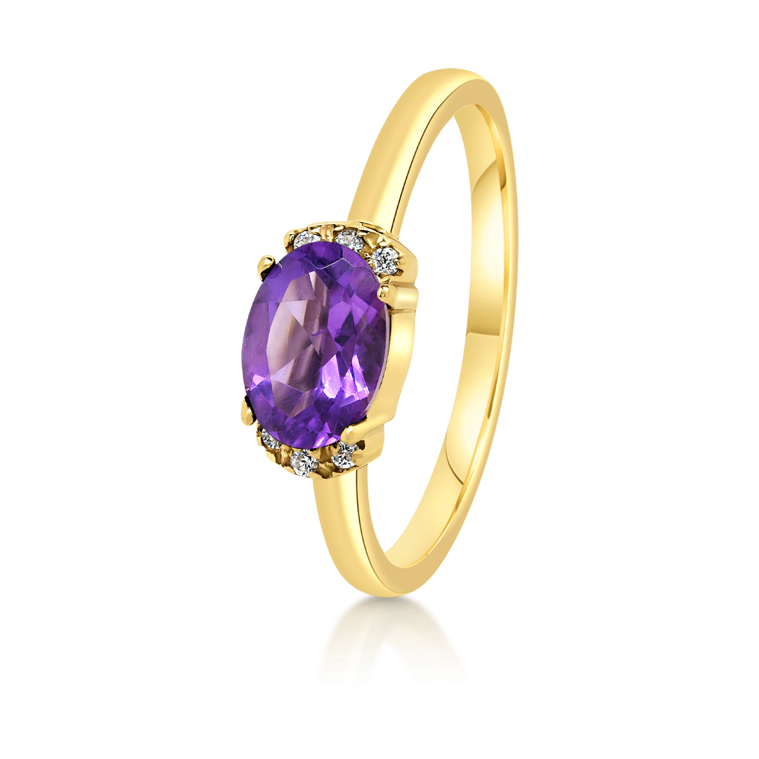 Inel din aur galben de 14K, cu piatră Ametist și pietre Cubic Zirconia.
