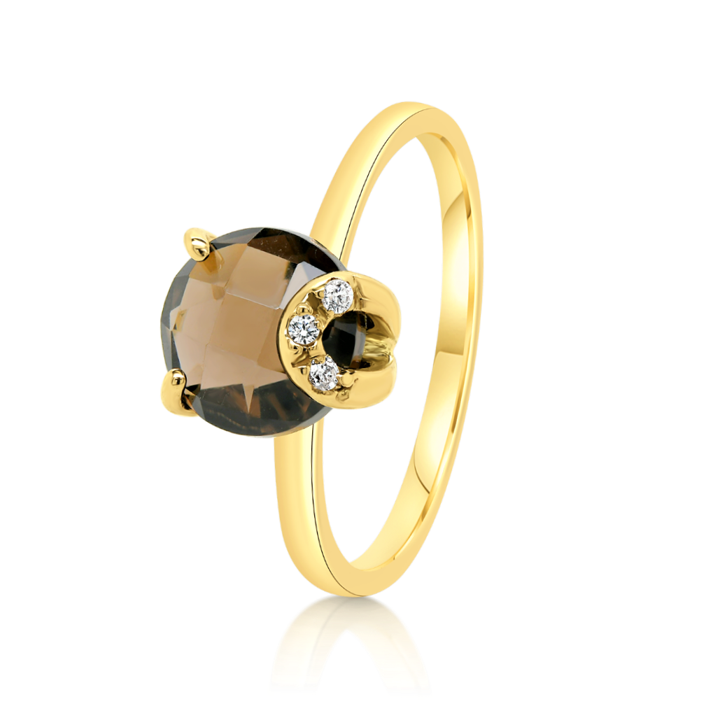 Inel din aur galben de 14K cu Smoky Quartz