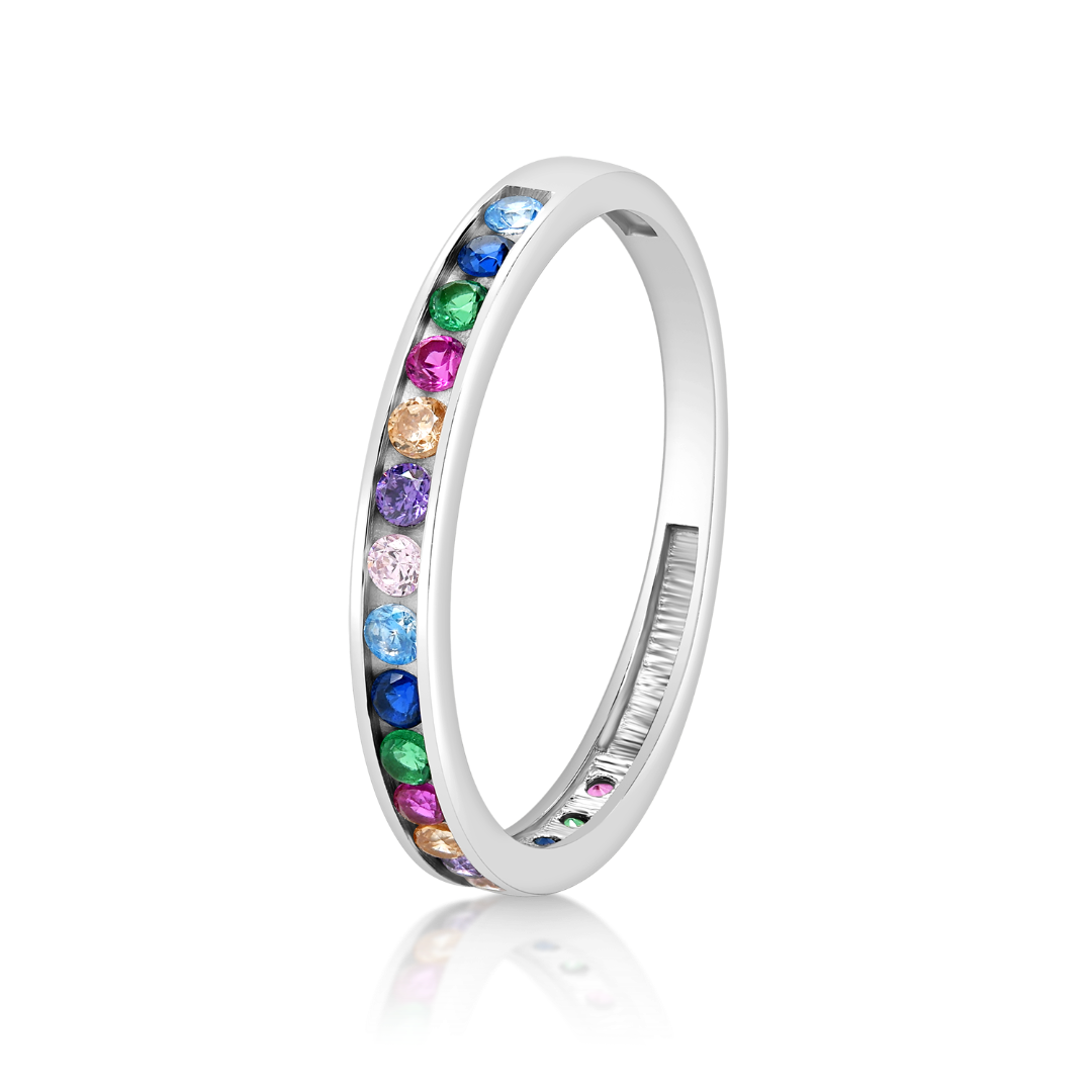 Inel din aur alb de 14K cu pietre Cubic Zirconia multicolore.