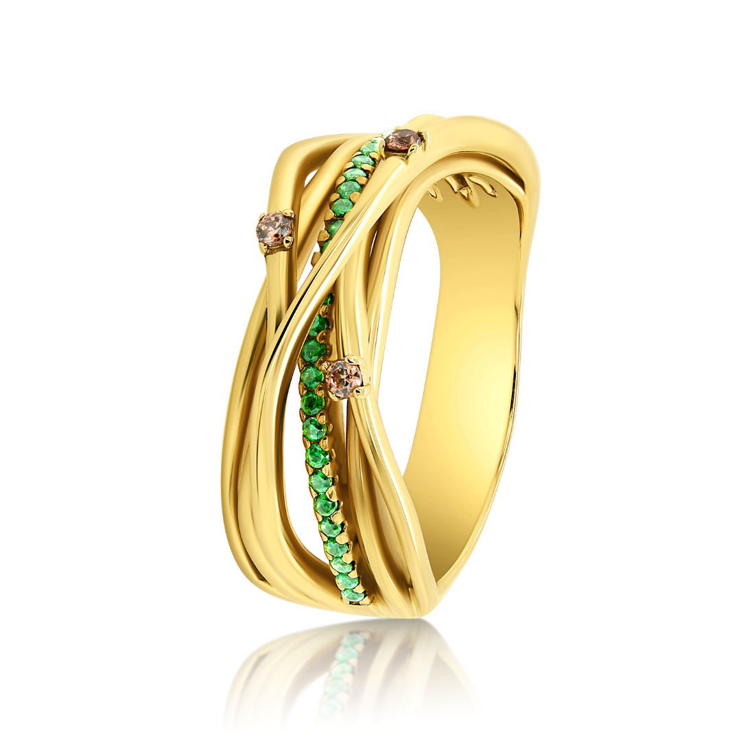 Inel din aur galben de 14K cu pietre Cubic Zirconia colorate.