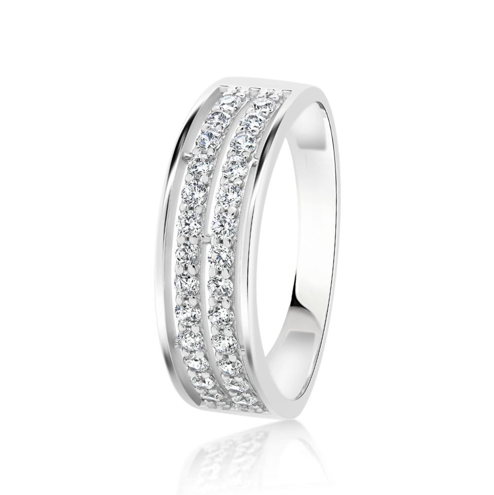 Inel din aur alb de 14K cu pietre cubic zirconia.