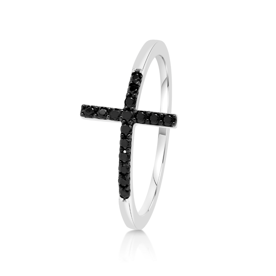 Inel din aur alb de 14K cu pietre cubic zirconia negre.