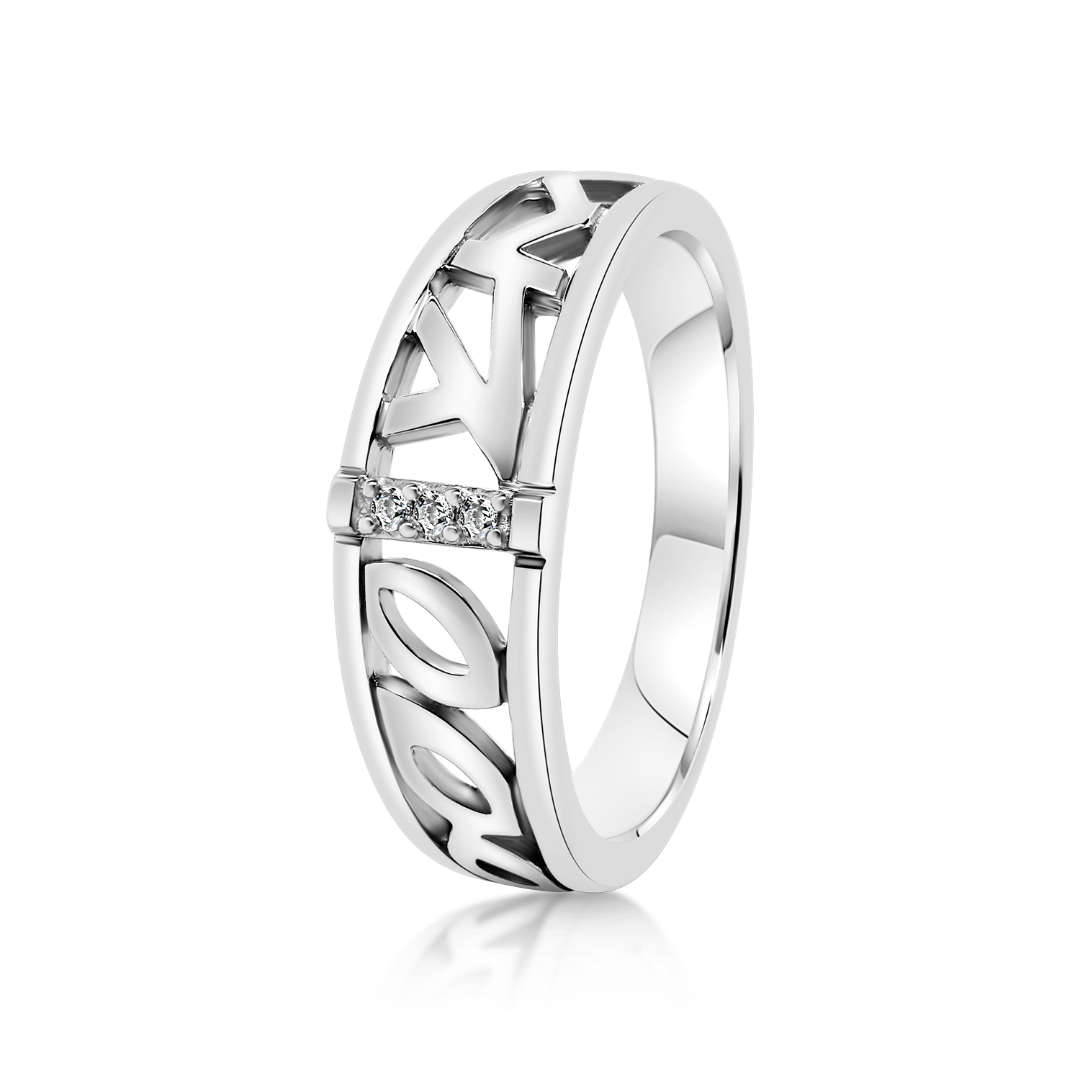 Inel din aur alb de 14K cu pietre cubic zirconia.