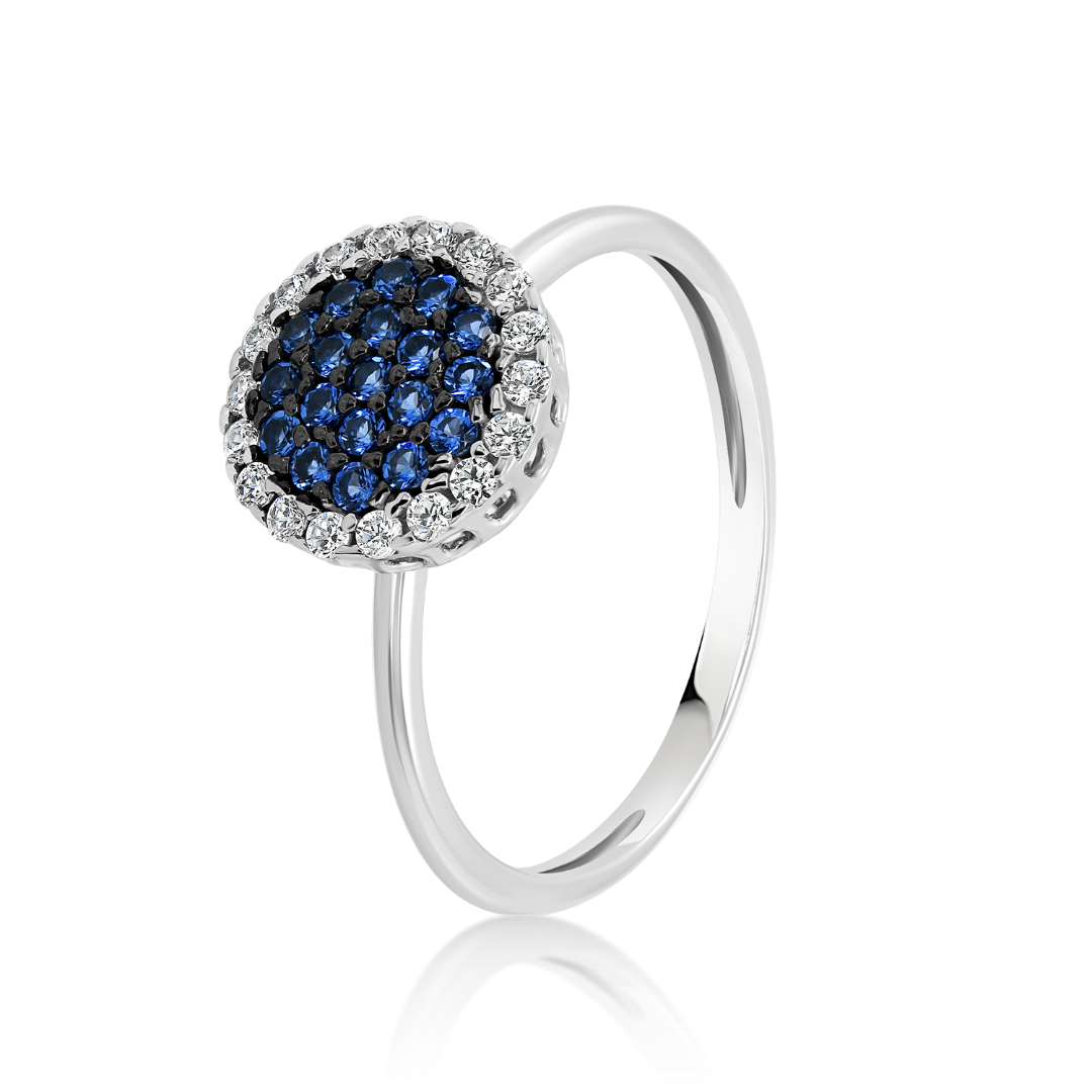 Inel din aur alb de 14K, cu rodiu negru, pietre Cubic Zirconia