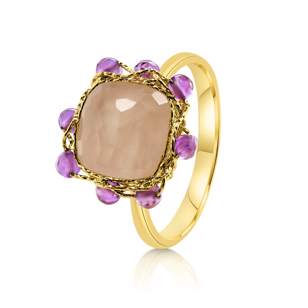 Inel din aur galben de 14K cu Pink Quartz