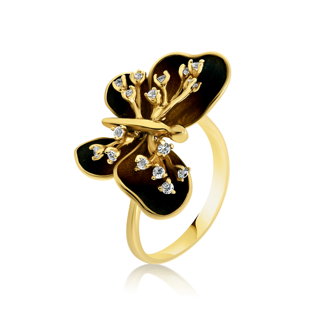 Inel din aur galben de 14K, cu element tip fluture și Safire albe.