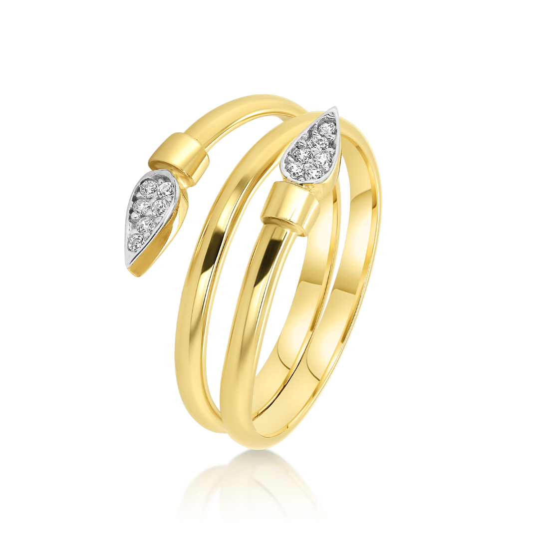 Inel reglabil din aur galben de 14K cu pietre Cubic Zirconia.
