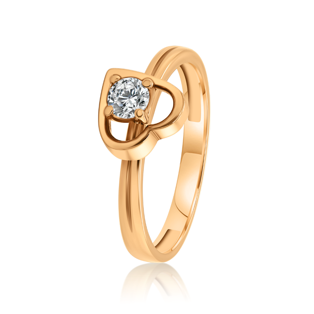 Inel cu element în formă de inimă din aur roz de 14K cu pietre Cubic Zirconia.