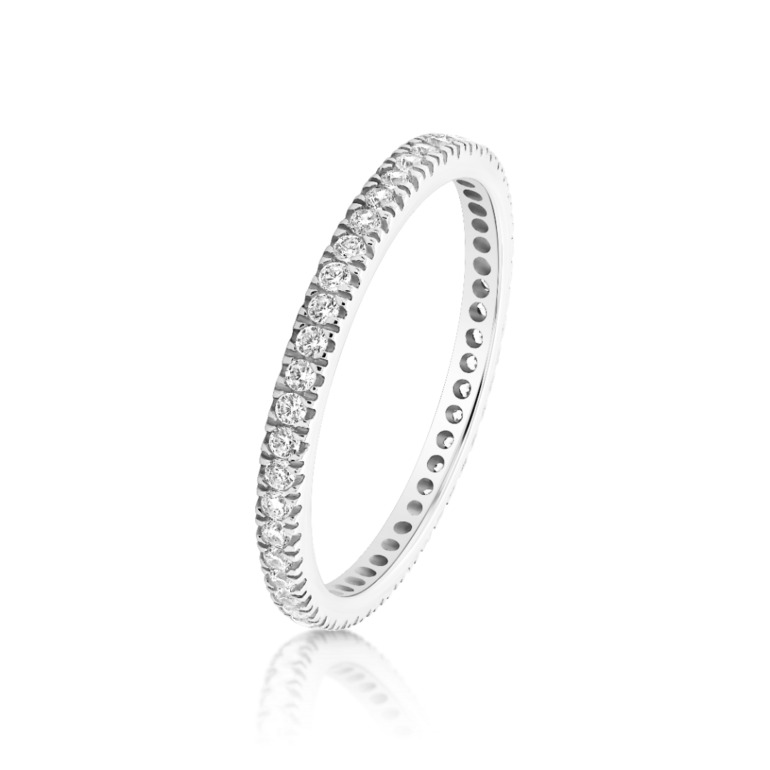 Inel din aur alb de 14K cu pietre Cubic Zirconia albe.