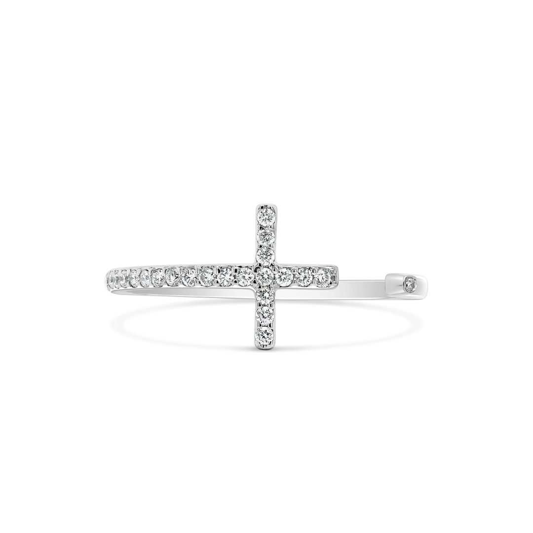 Inel din aur alb de 14K cu pietre cubic zirconia.
