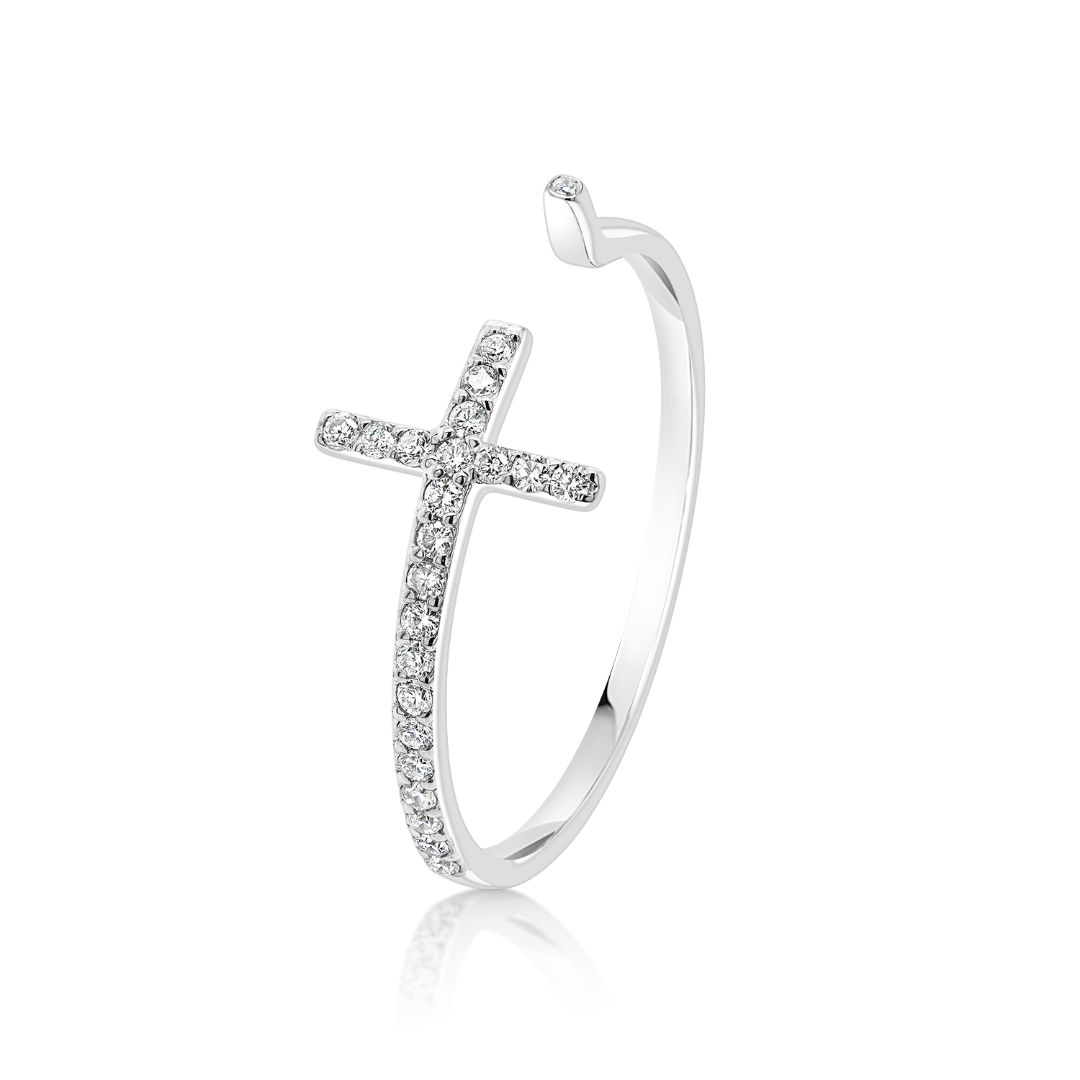 Inel din aur alb de 14K cu pietre cubic zirconia.