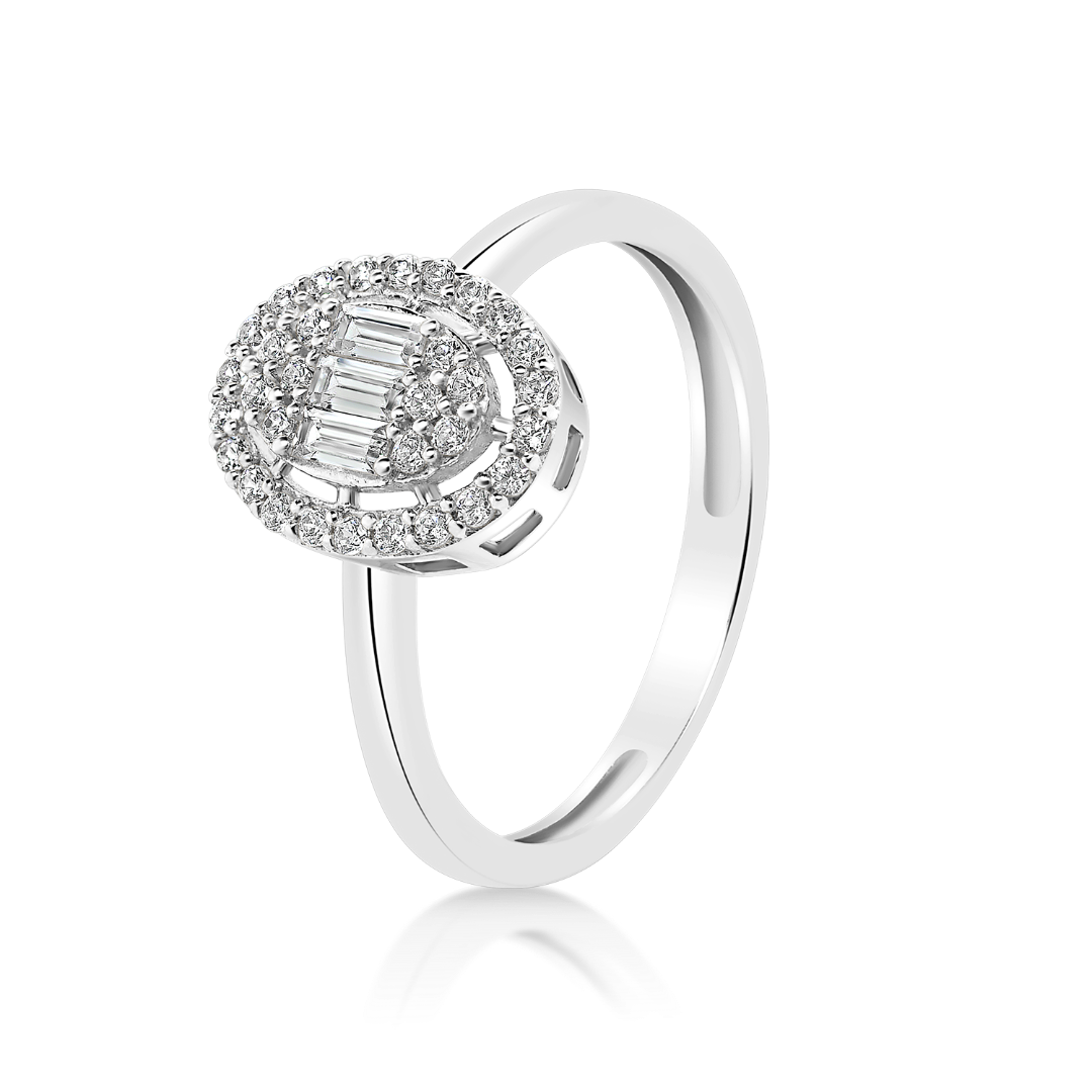 Inel din aur alb de 14K cu pietre cubic zirconia.