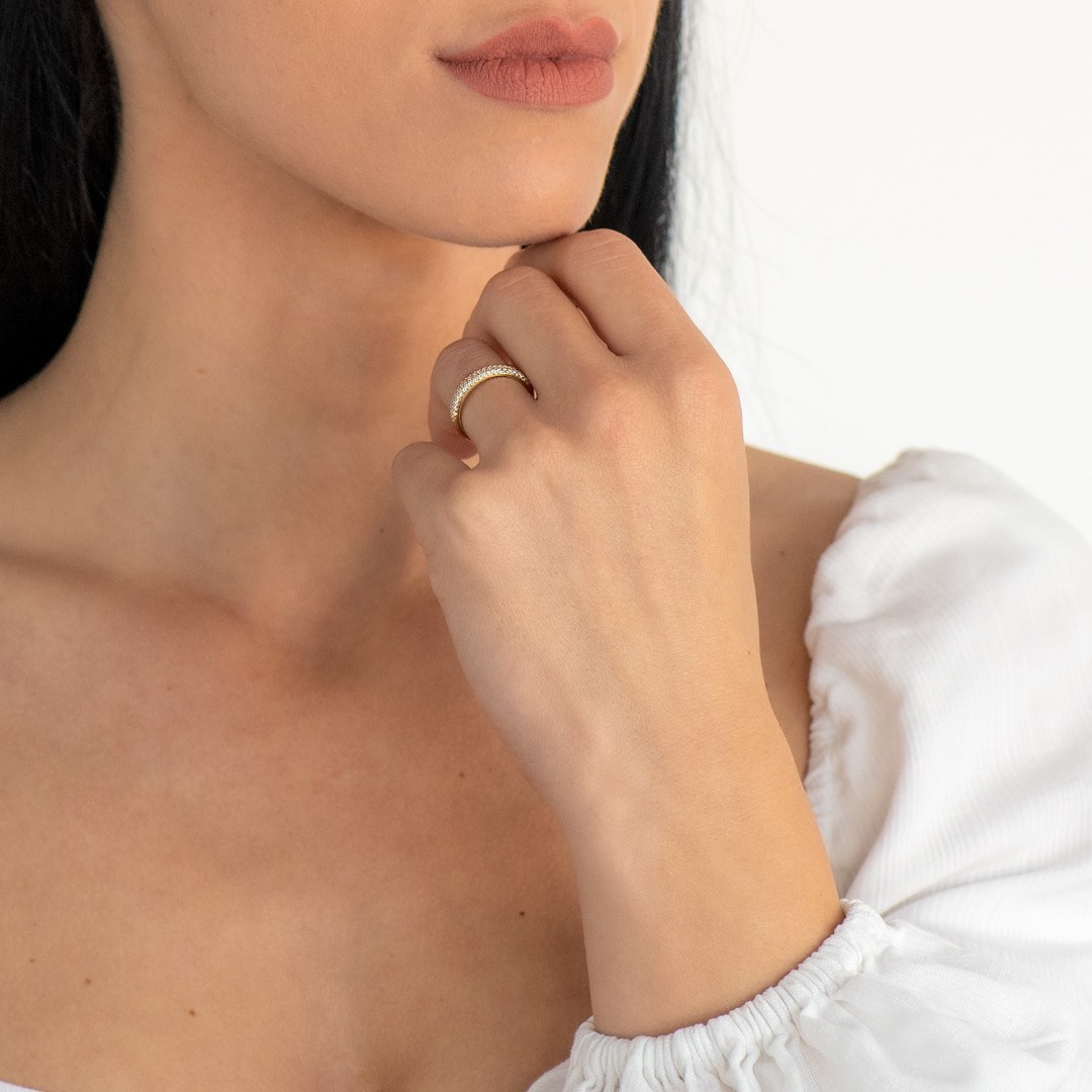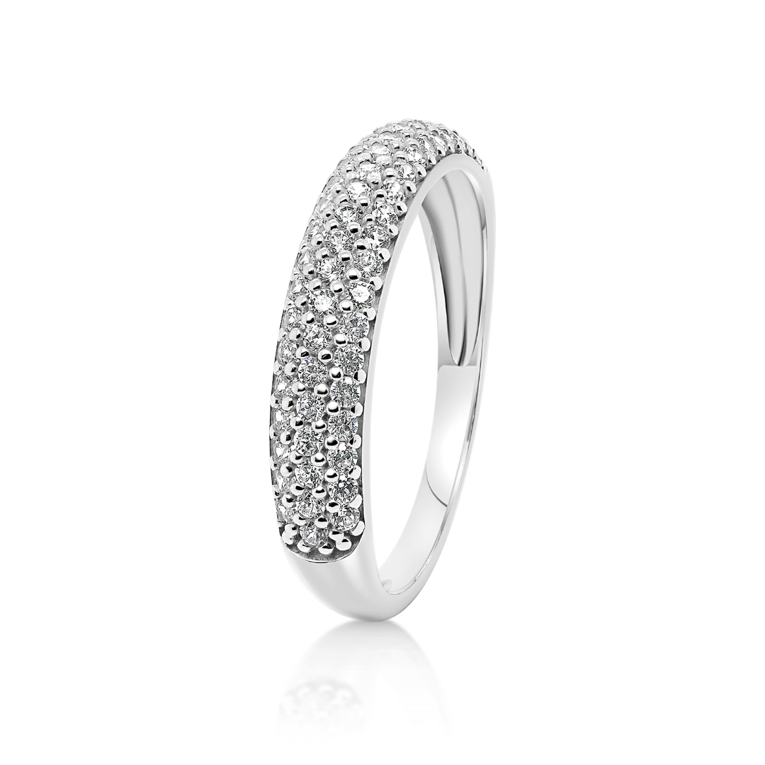 Inel din aur alb de 14K cu pietre cubic zirconia.
