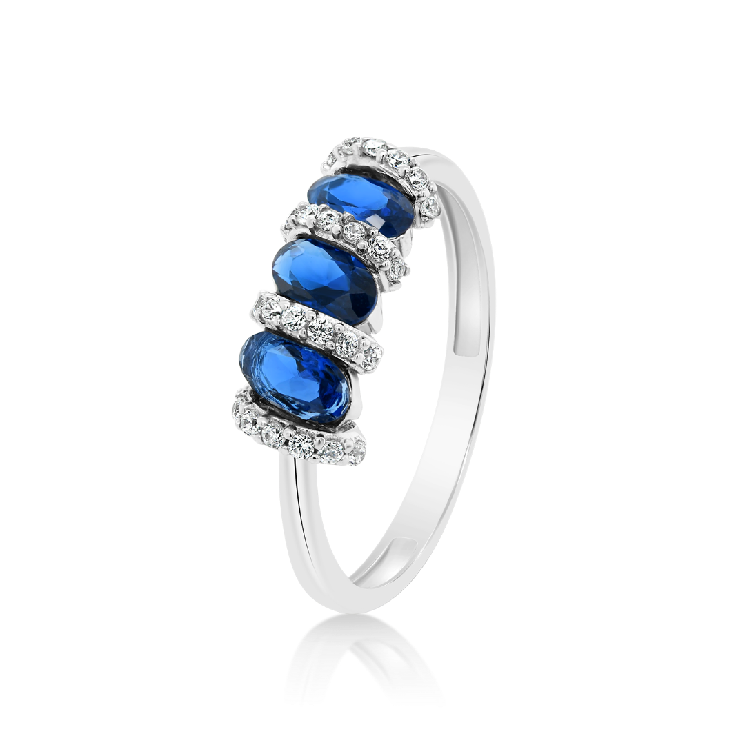 Inel din aur alb de 14K cu pietre cubic zirconia.