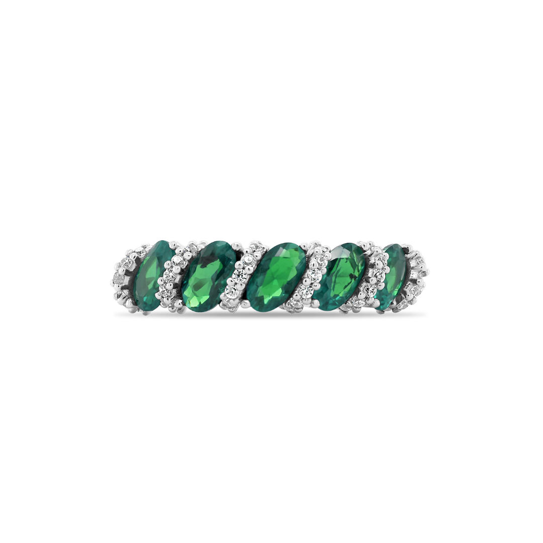 Inel din aur alb de 14K cu pietre cubic zirconia.