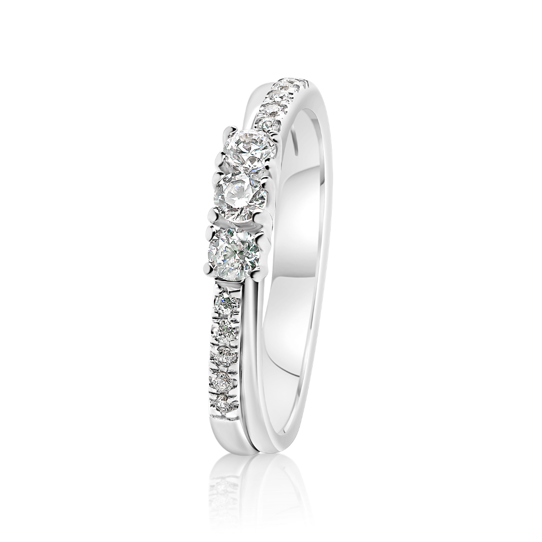 Inel cu șină dublă din aur alb de 14K și pietre Cubic Zirconia albe.
