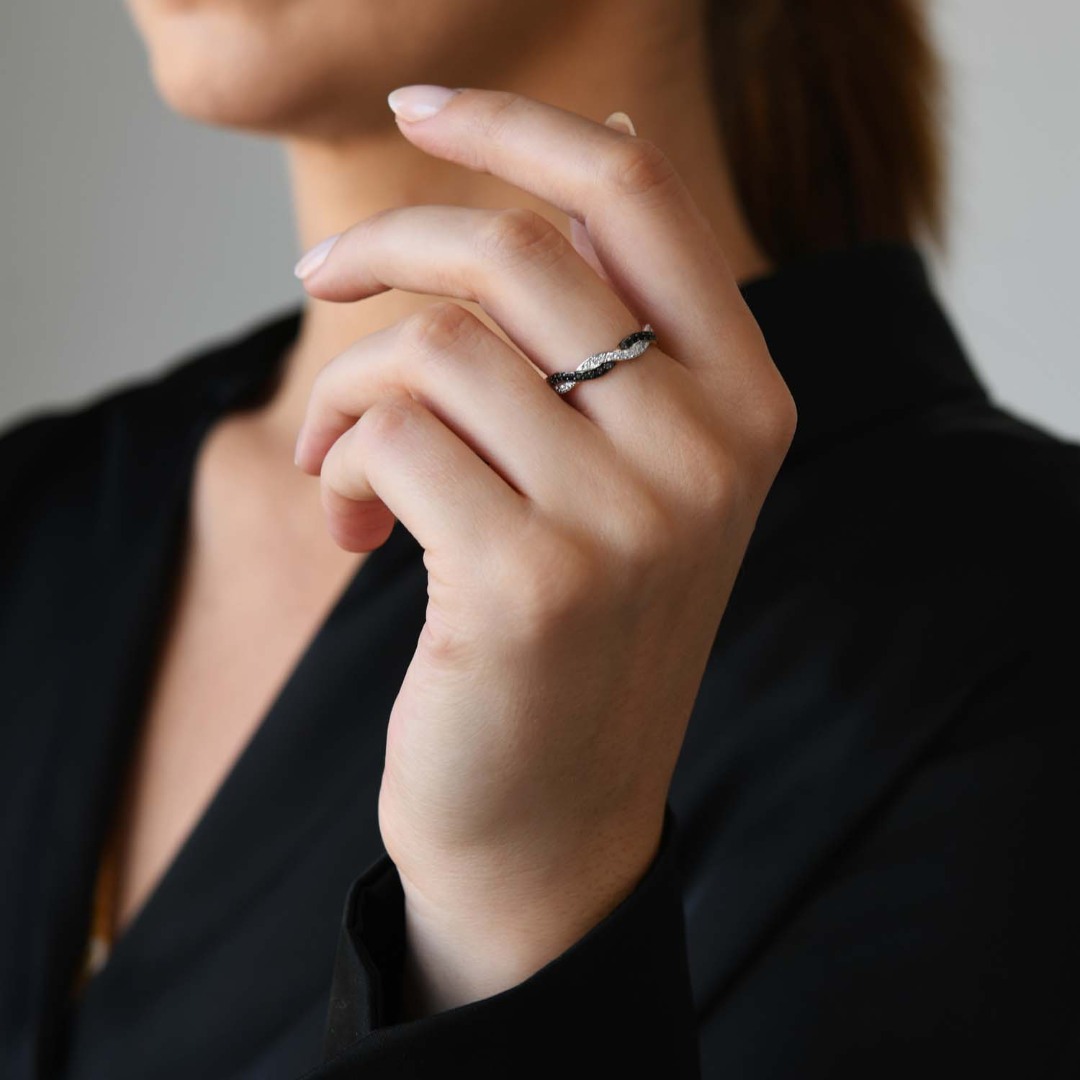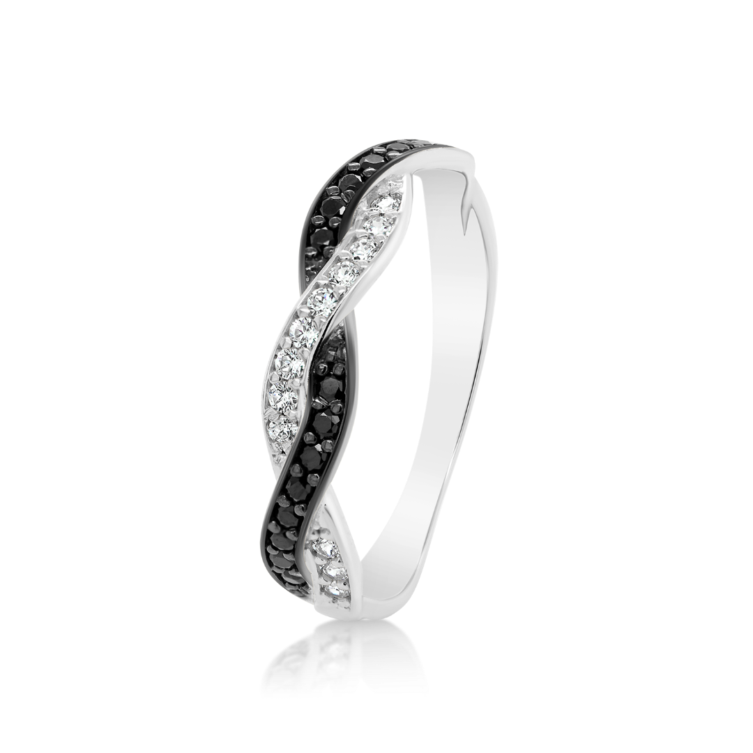 Inel din aur alb de 14K cu pietre cubic zirconia.
