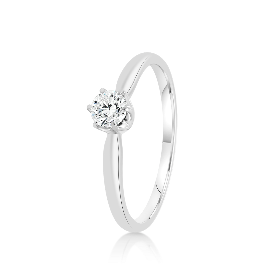 Inel din aur alb de 14K cu piatră cubic zirconia.
