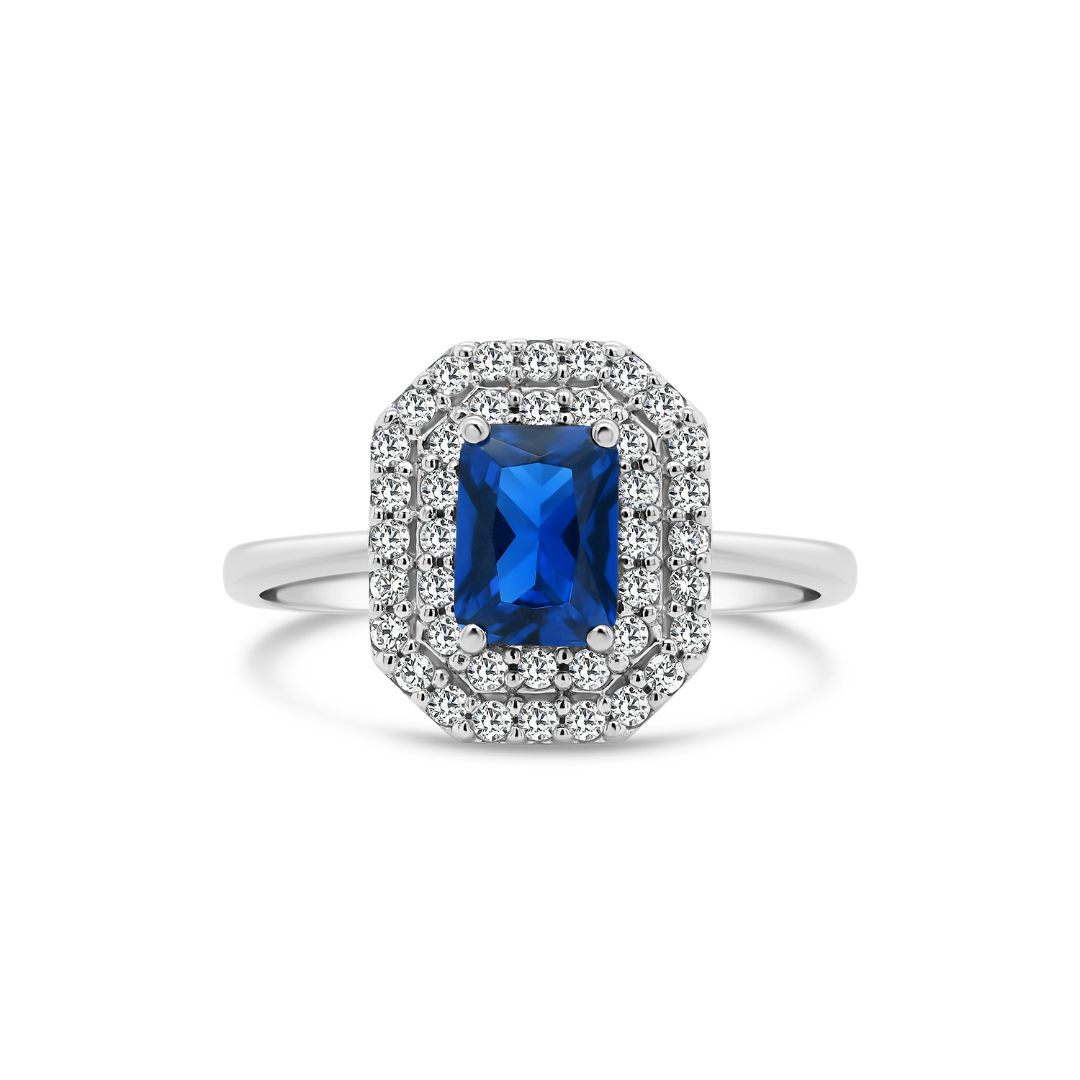 Inel din aur alb de 14K cu pietre cubic zirconia.