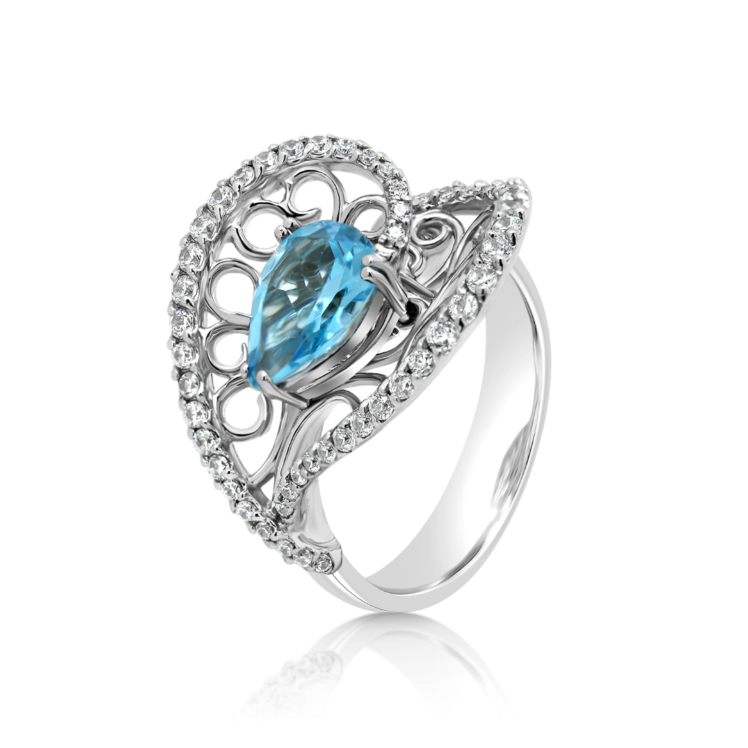 Inel din aur alb de 14K cu pietre cubic zirconia.