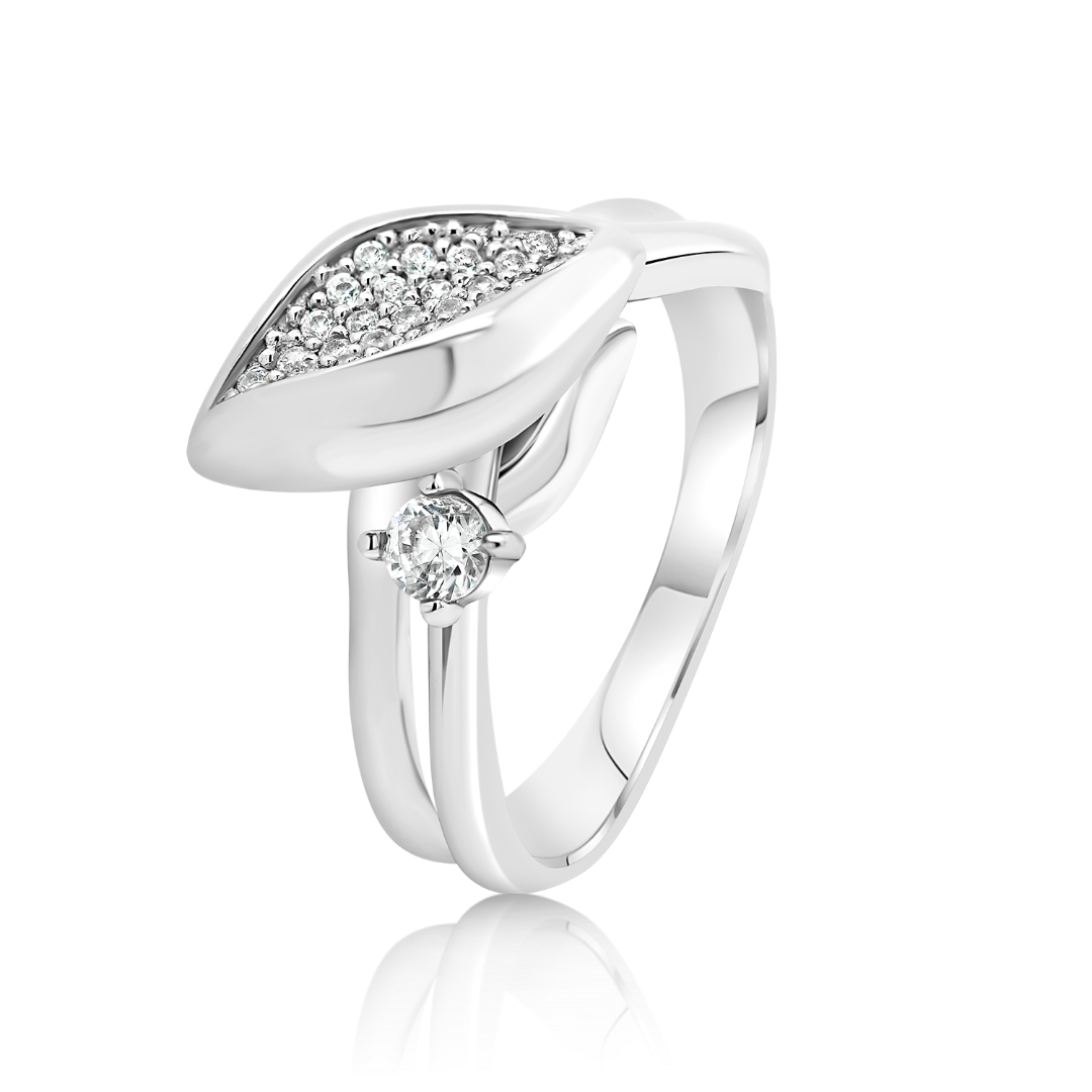 Inel din aur alb de 14K cu pietre zirconia incolore.