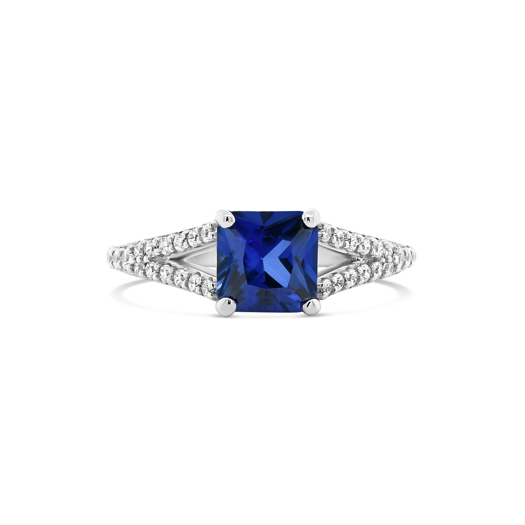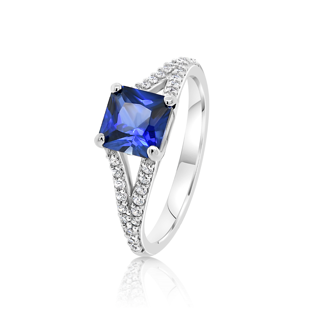Inel din aur alb de 14K cu pietre cubic zirconia.