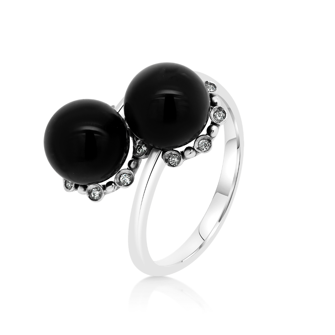 Inel din aur alb de 14K cu Onix și pietre cubic zirconia.