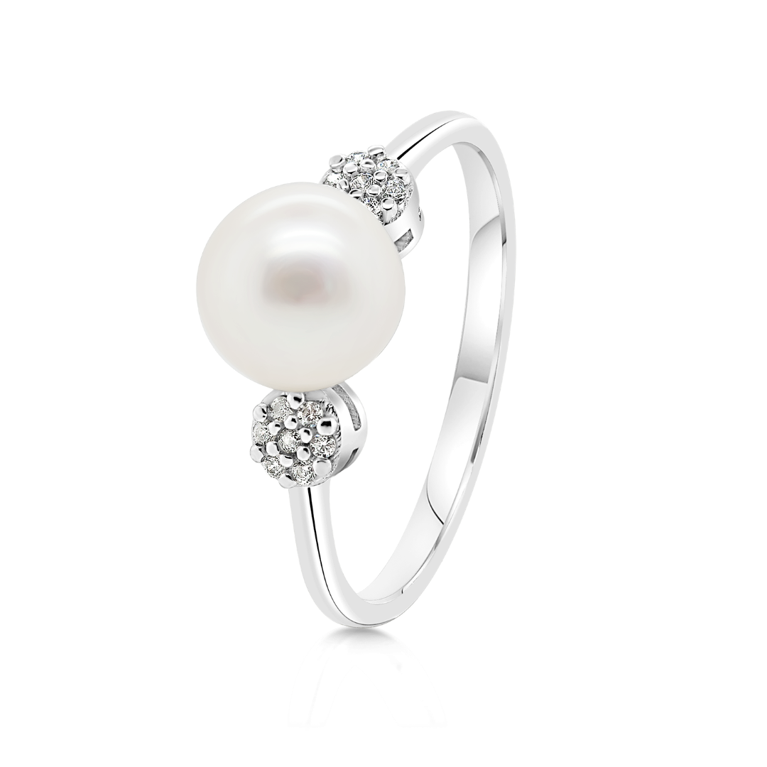 Inel din aur alb de 14K cu Perlă