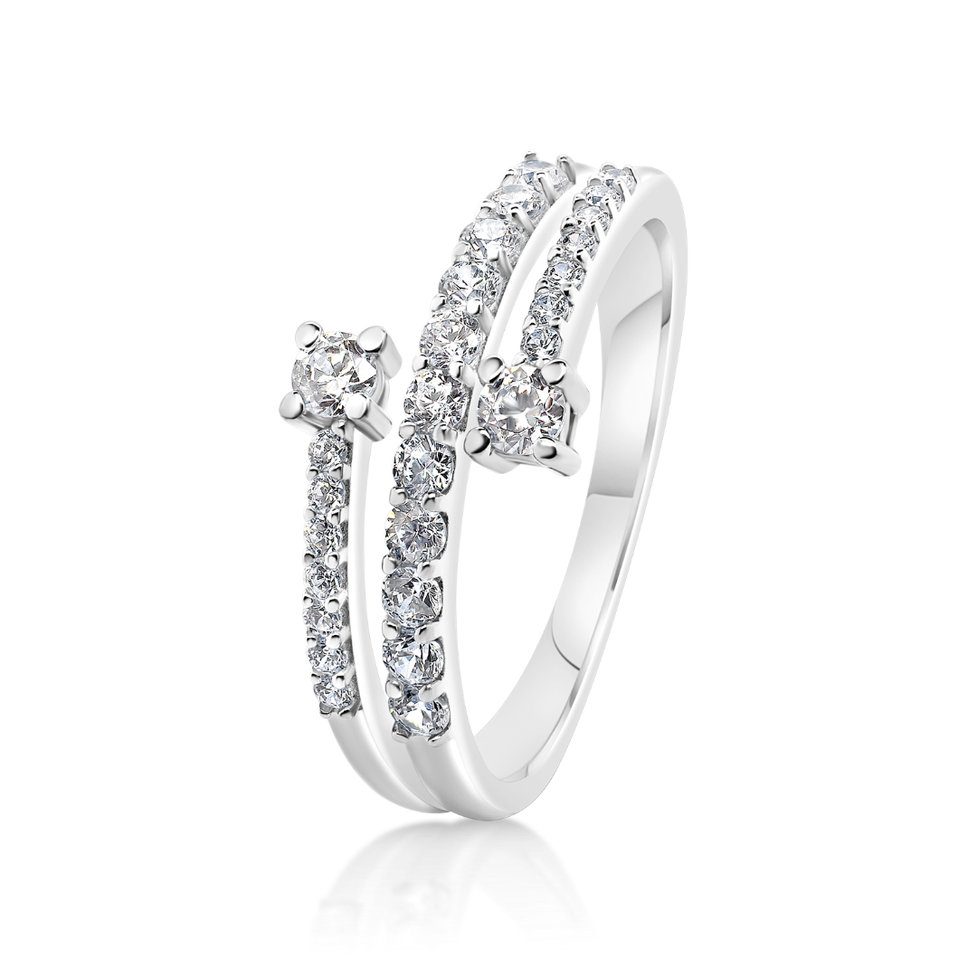 Inel din aur alb de 14K cu pietre cubic zirconia.