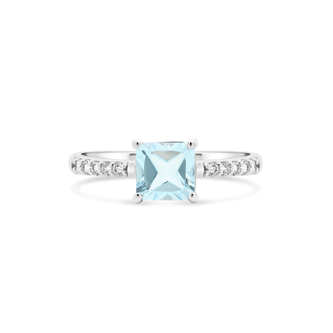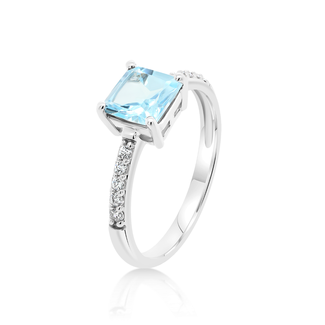 Inel din aur alb de 14K, cu Blue Topaz și pietre cubic zirconia.