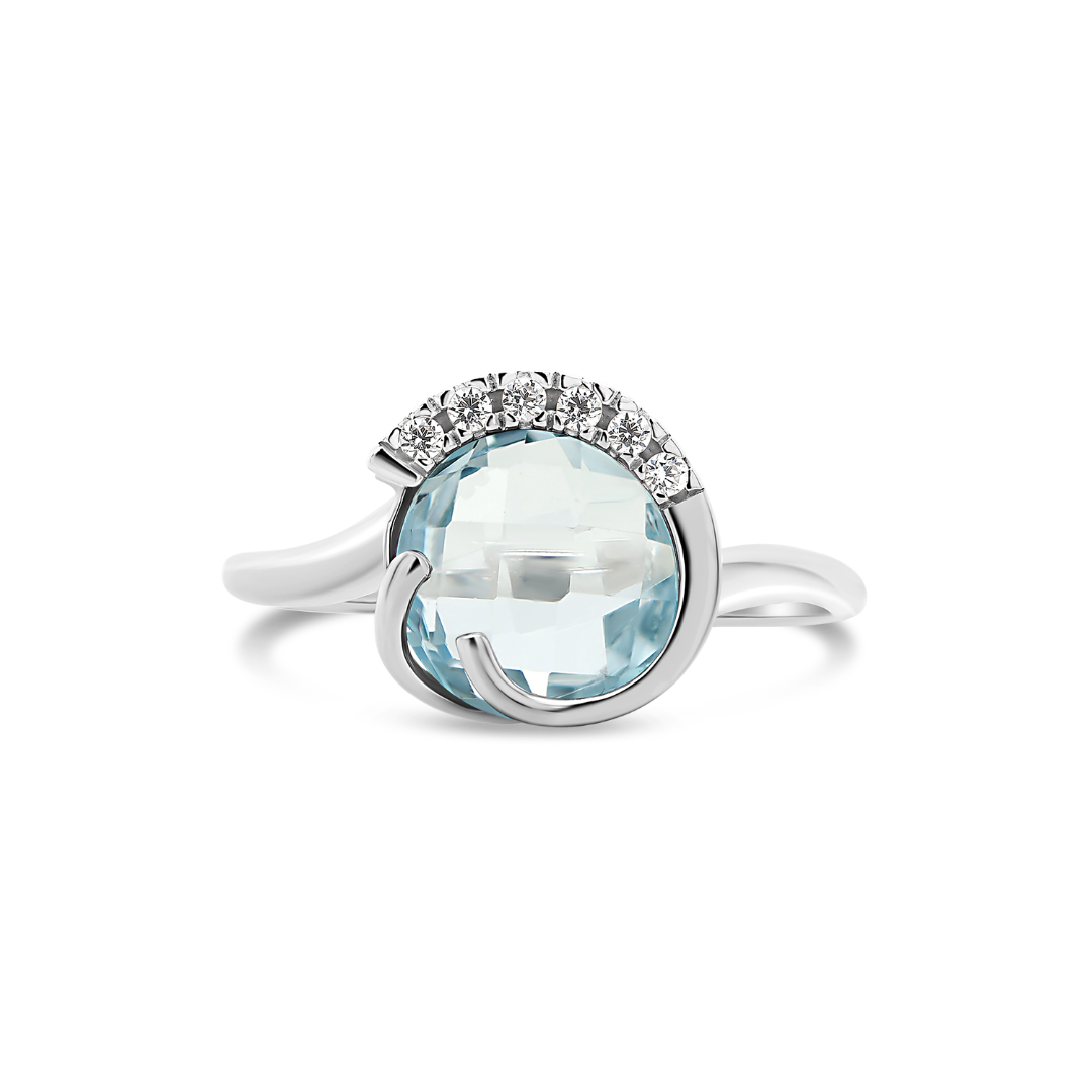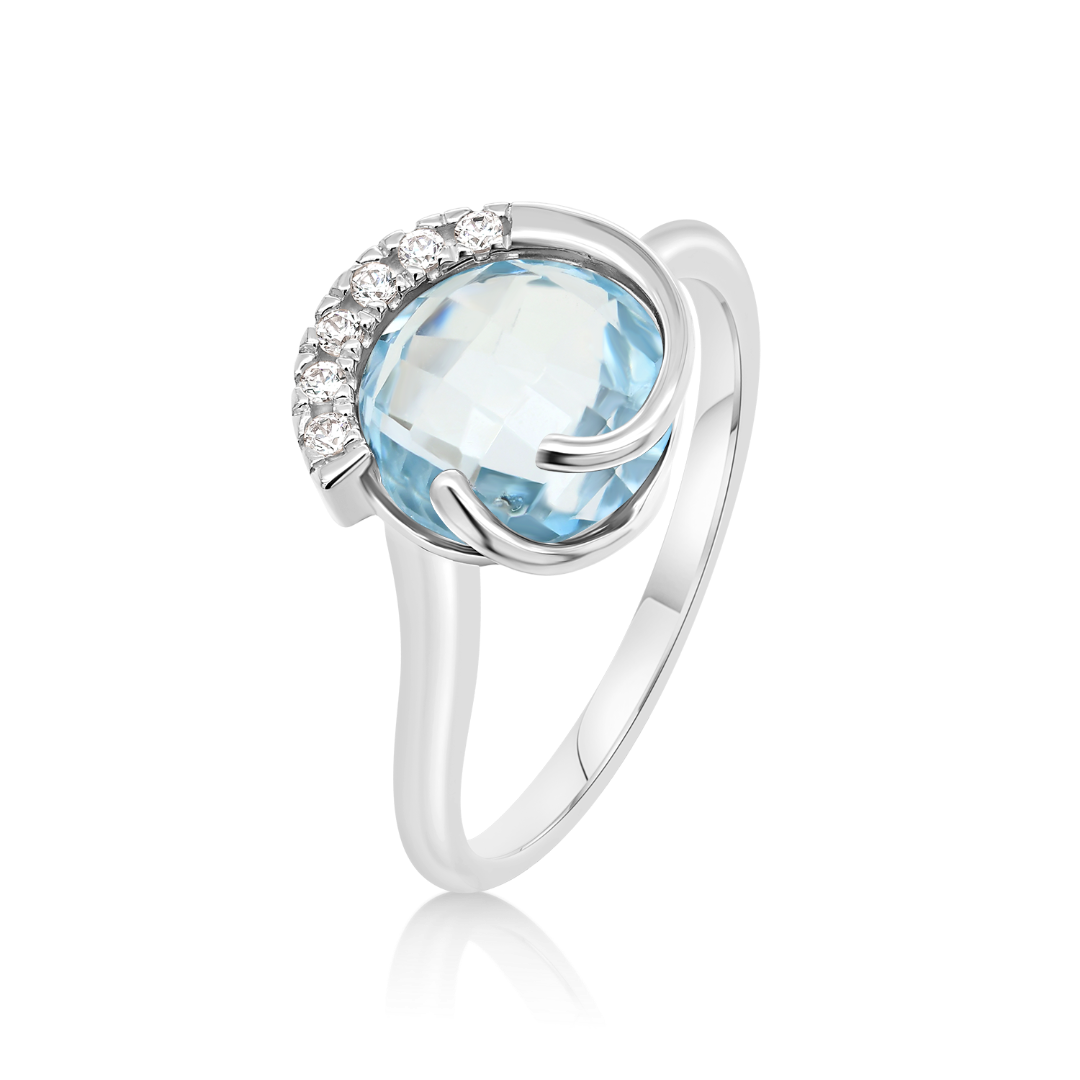 Inel din aur alb de 14K, cu Topaz și pietre cubic zirconia.